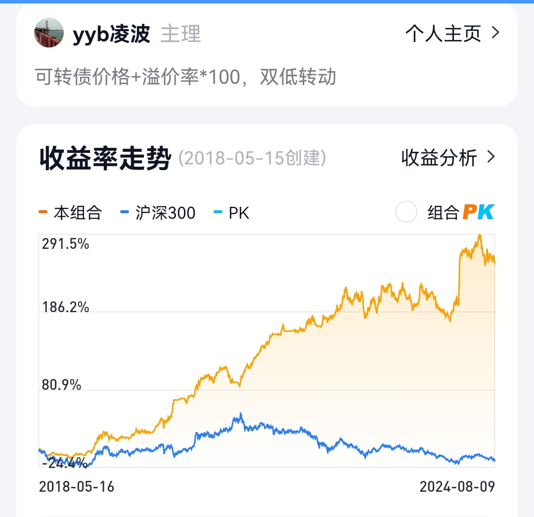 24-6-5今年净值:1.3011仓位100% 本日-2.90%本周-4.73%本月-4.73%本季+2.05%本年+30.11%组合5年半来最大回撤-16.03% 23.12.26当前历史高点回撤-5.04%24.05.27历史最高净值:3.915118.05.15至今累计净值:3.71782018年收益率-7.62%2019年收益率+44.2%2020年收益率+45.46%2021年收益率+...