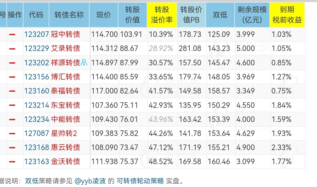 现 价 溢价率 双低值