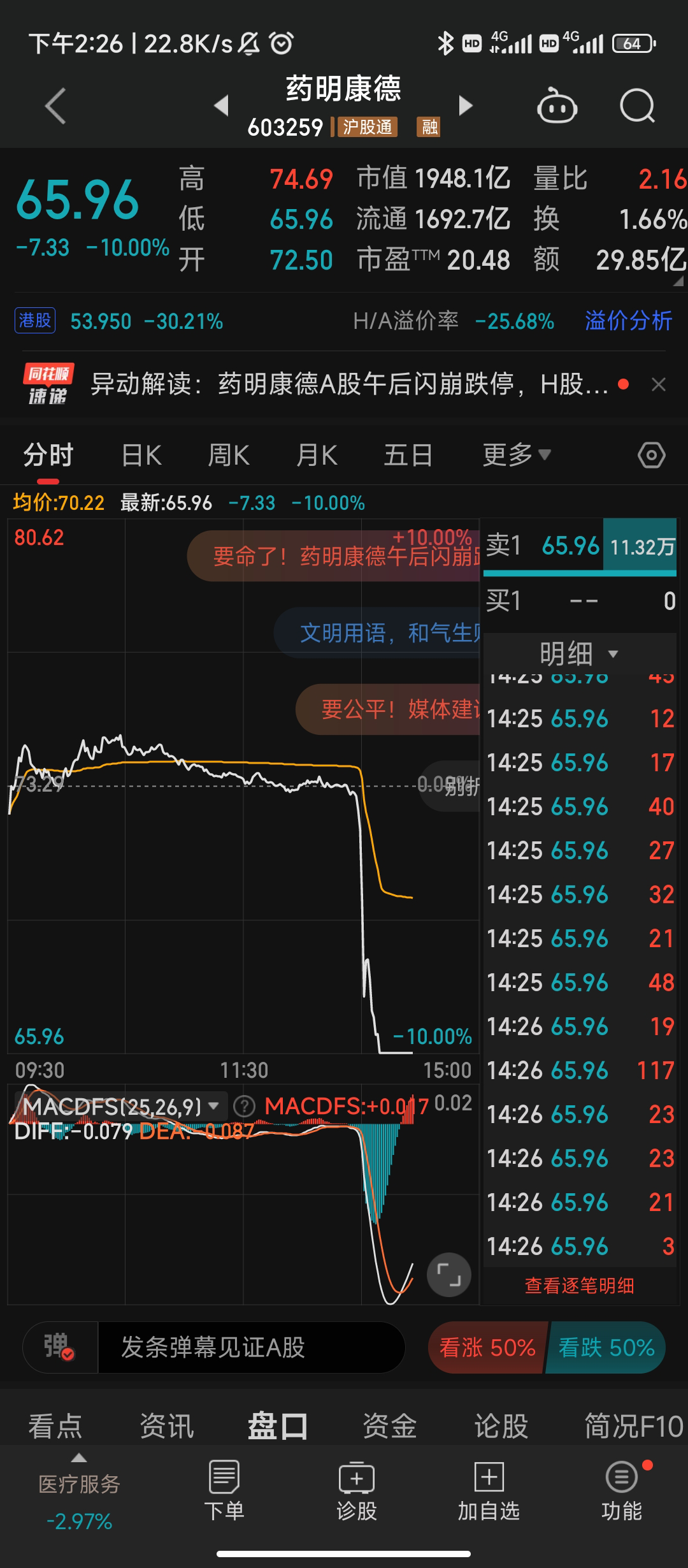 有人做空吧!我也被埋了,打算远离医药了,真的看不懂。买指数也跌得这么惨。