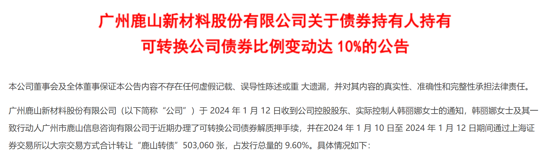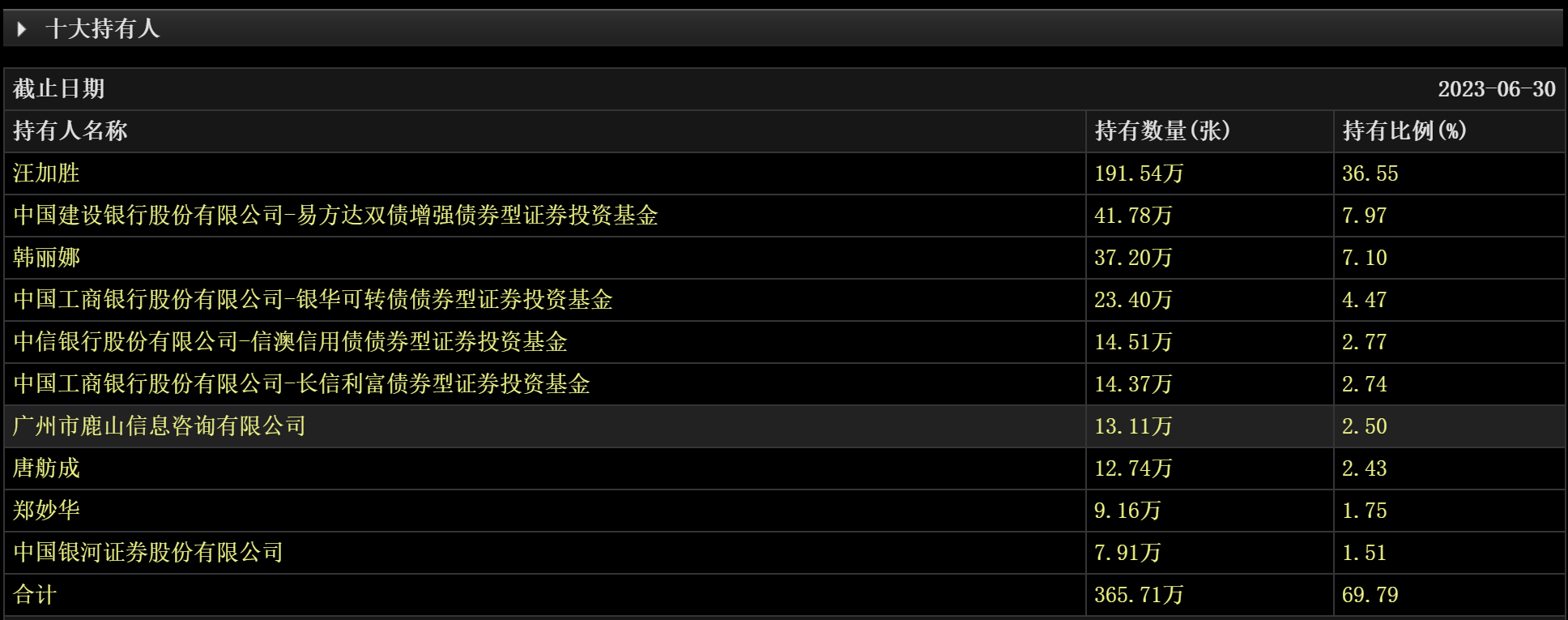 这个转债,第一大持有人是正股鹿山新材的大股东,目前还没有跑。