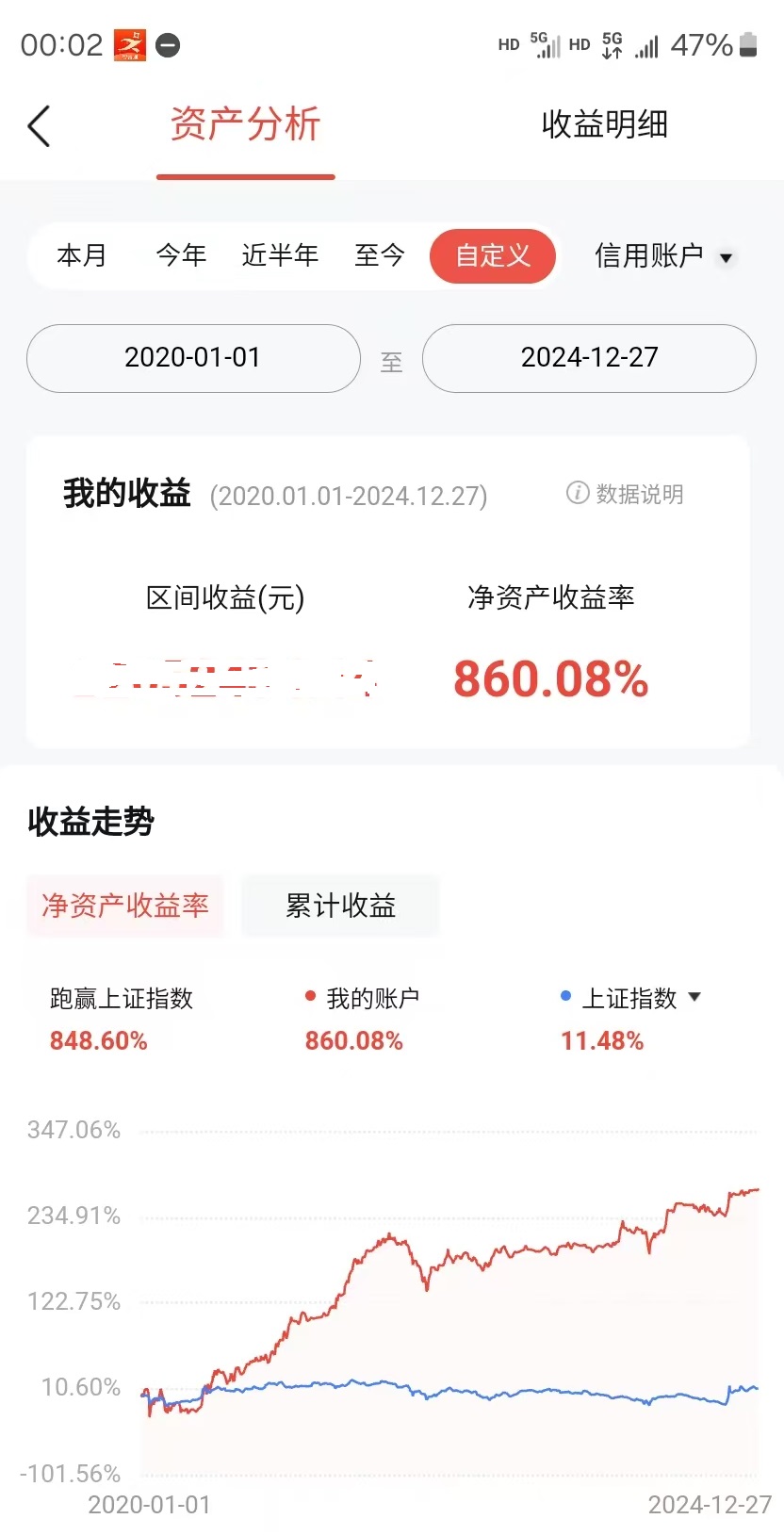 我搞不懂为什么所有人都贴收益率,而不贴收益金额,这样没有参考意义啊,我也有一次小账户几天十倍的,我都不知道能不能抄作业,你就把收益金额放上面就好了,为什么打马赛克?收益率,相对收益金额“稍微”更能体现水平,虽然资金大小之下收益率会不一样