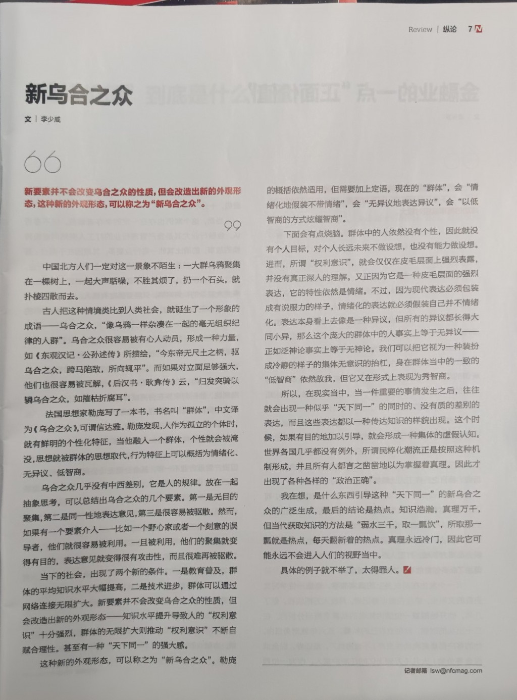 上个月看南风窗的时候,看到这篇文章,引起了共鸣.,南风窗是今年新订阅的杂志,但在思想上有着难得的独立性。
