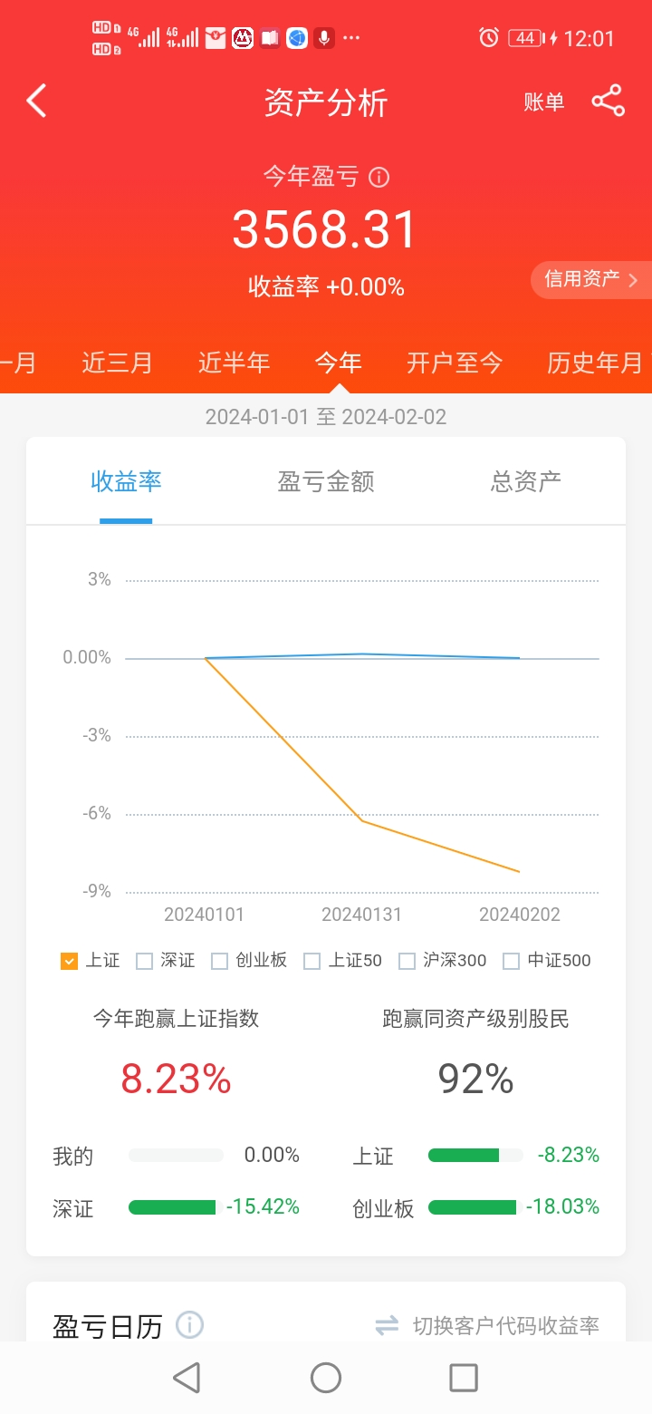 东方财富一个买204001的账户,今年收益0.13%,战胜95.64%的用户。