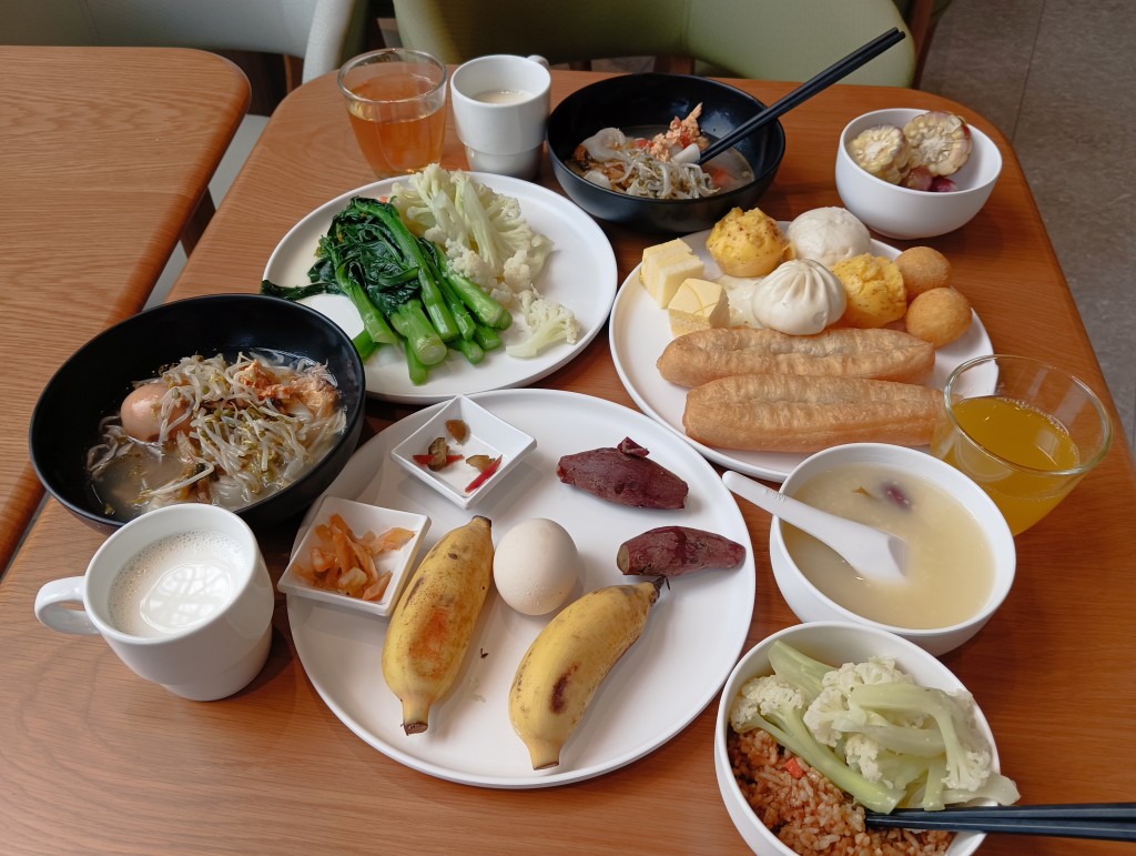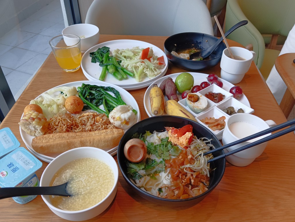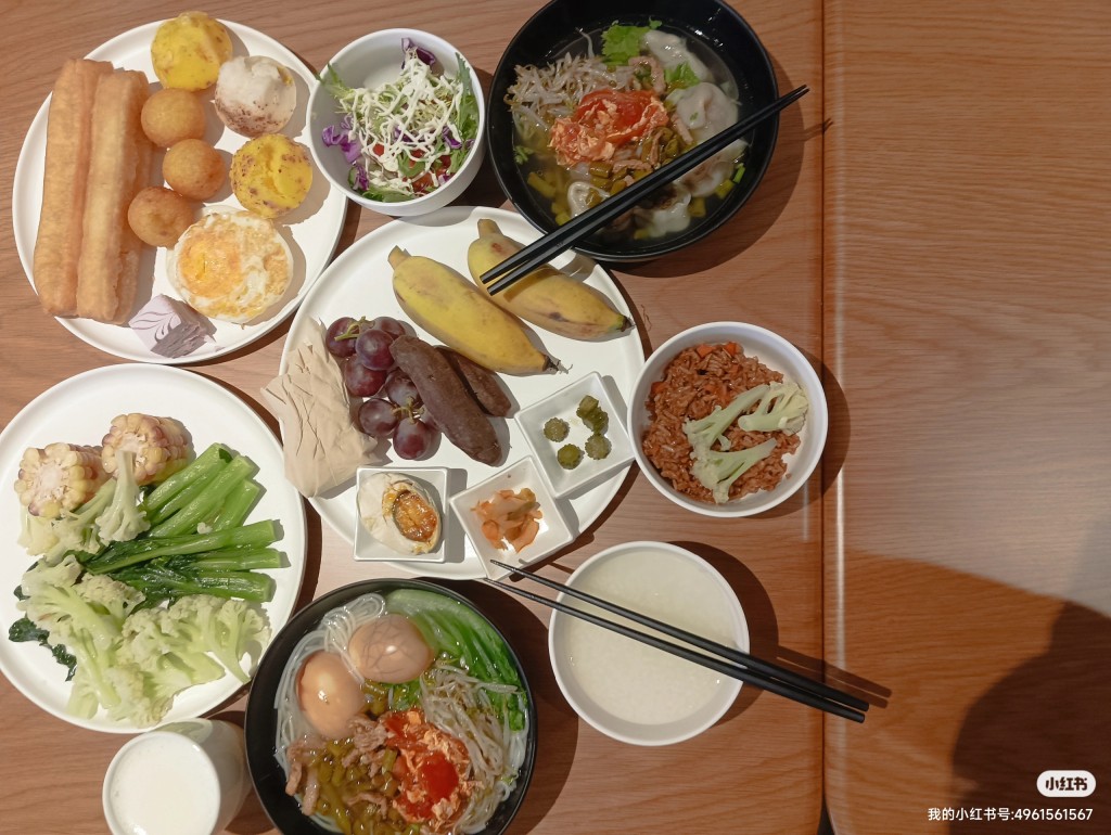 早上8点30起床,洗漱完毕2楼自助餐!可能去迟了,人员不多,反觉清爽,宽敞!