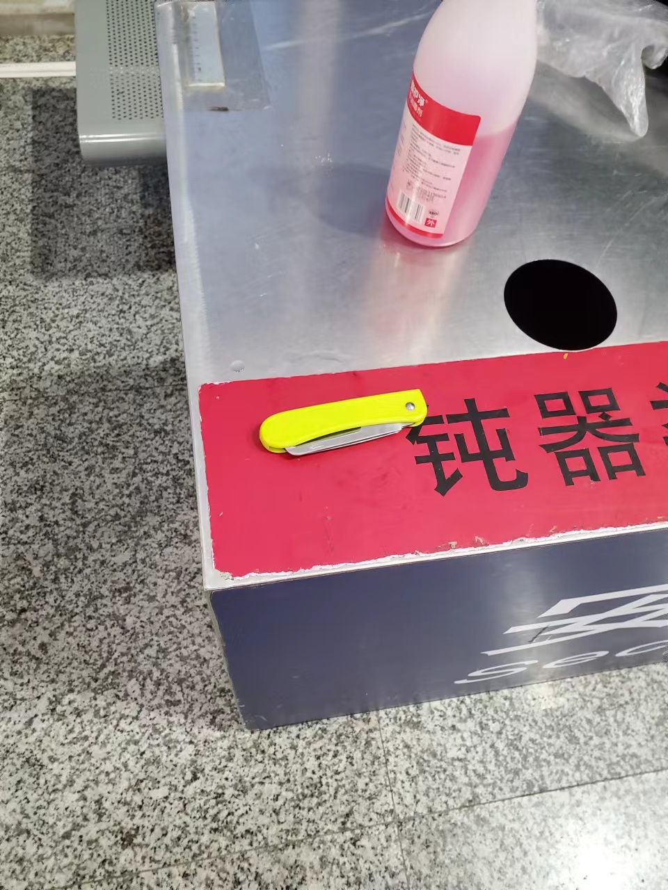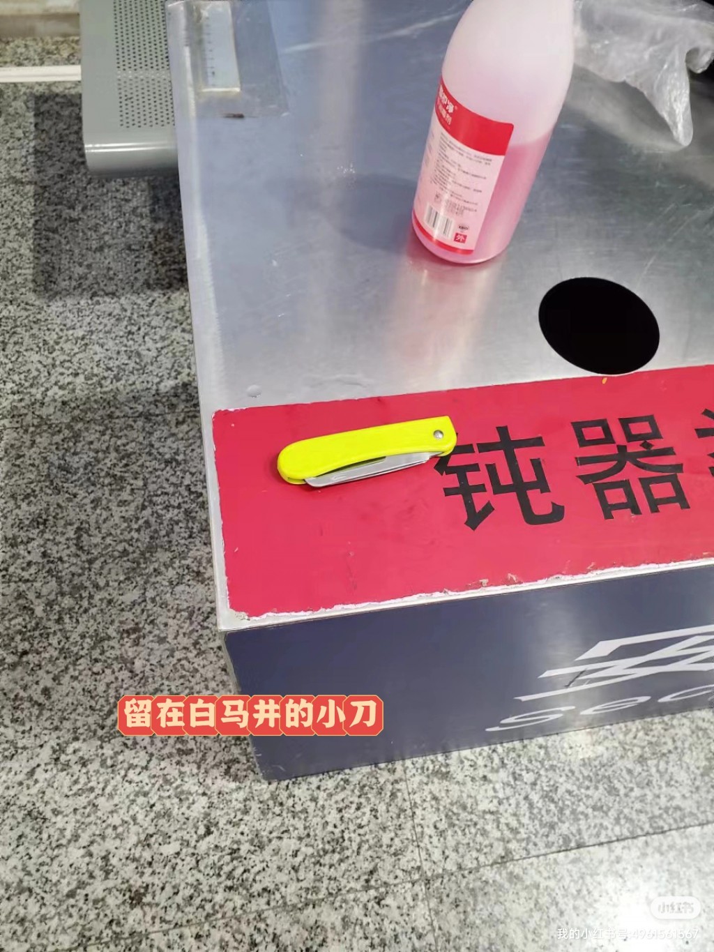 没有辩解,没有争吵,有的只是无奈,有的只是不舍!“能否让我拍个照片留存,这小刀跟随我多年!”我苦笑道。工作人员很客气说可以,随后便将小水果刀放在贴有钝器标识工作台边。