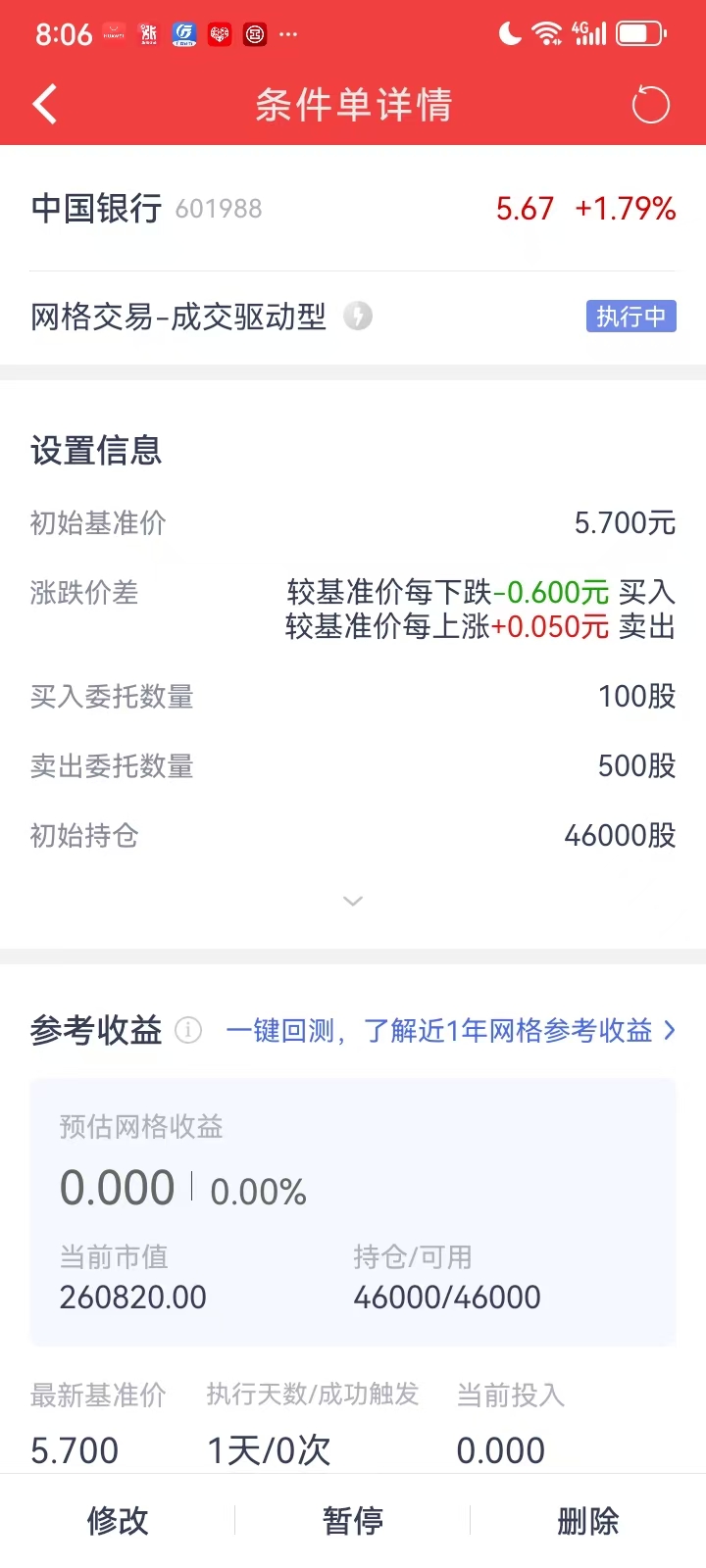 我也是银河的;我是低波品种用成交驱动;其他用到价触发的;然后都是等比网格不是价差网格。不知道是否合理?努力做低成本中。。。目前只有2个红,另外4个都绿色了。我发现如果一个标的在成本线下方,买一份,成本价格会下降,但对称卖一份成本价又上去一些了,难道的成本线下方应该少卖吗?一般理论都说忘记成本,不应该考虑成本决策交易,对吗?我不关注持仓成本,华泰这个账户目前是7盈6亏。我主要关注持仓数量和账户现金量,据此确定是多买少卖还是少买多卖或是买卖相同。