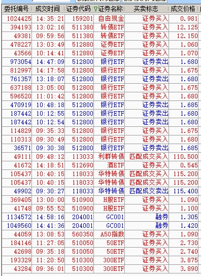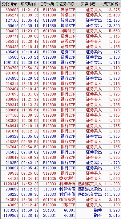 我是一个七十多岁的老人,证券交易主要靠智能条件单自动成交。我在银河证券的一个账户设置的条件单,大多数是网格交易,也又一些定价卖出和定价买入等。两年多来个人感觉还不错,发个成交记录的帖子,希望得到集友的帮助和指教。成交记录绝大多数是智能条件单自动成交,也会有少数是手动委托成交的。帖子的标题就改为智能条件单的成交记录吧。有成交时争取每天发贴,如果万一成交笔数较多,就至少发一个成交标的完整记录,优先发512800银行ETF的成交记录。因为512800银行ETF的持仓市值约占这个账户的百分之四十,另外这个帖子最初的标题是512800银行ETF的网格交易,而且自2024年2月5日发贴以来的大多数回复都是512800银行ETF的成交记录。
