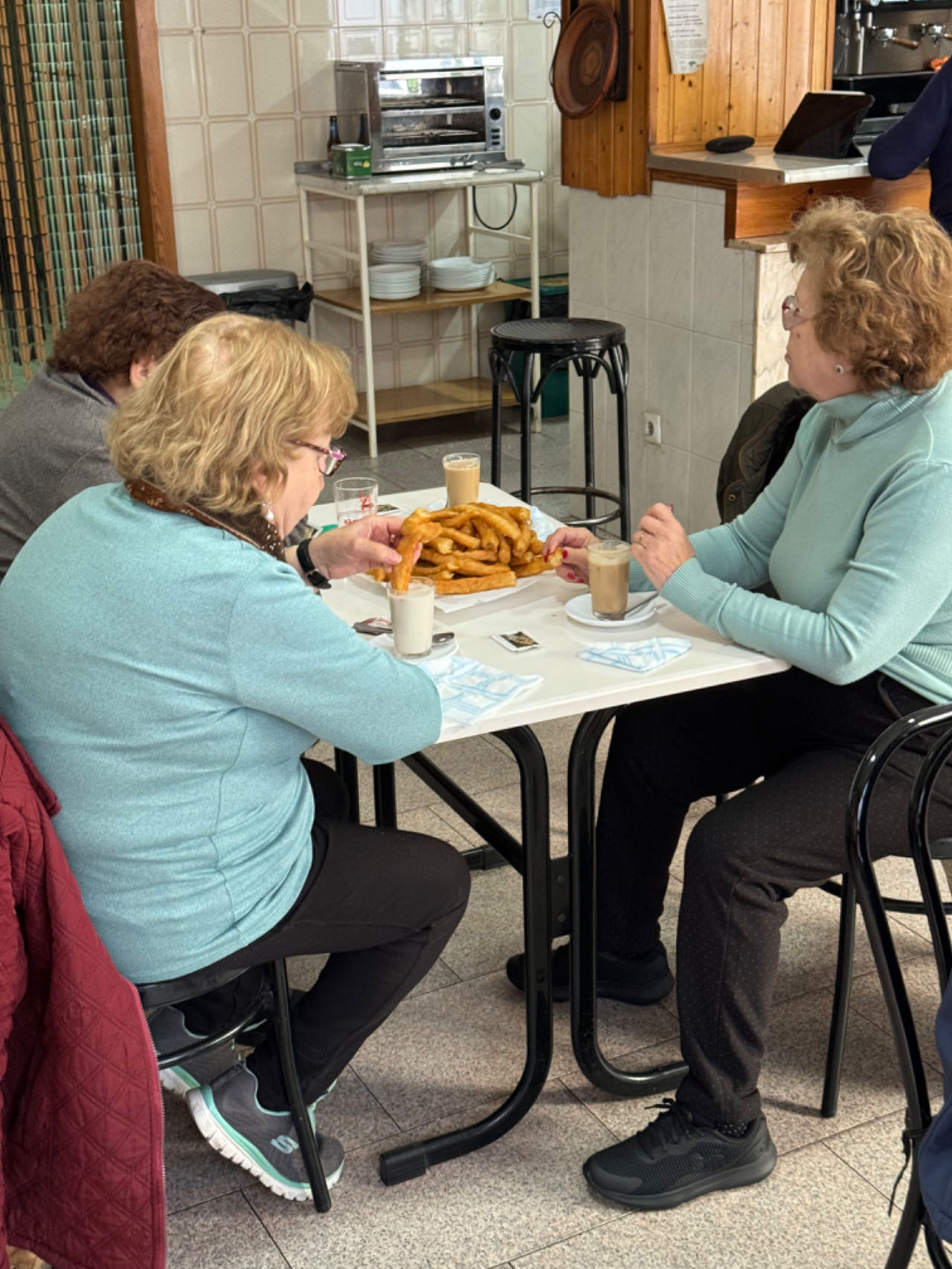 对照超市的物价来说,西班牙的餐饮现在并不便宜,但是感觉游客们吃起来兴致很高,当地人也挺喜欢在外面吃饭。 我最失败的第一餐,用翻译机,让他上特色,结果真的是特色,全是土豆,左边是炸土豆,右边是土豆饼。做的很好吃,但我不是去吃土豆的啊,