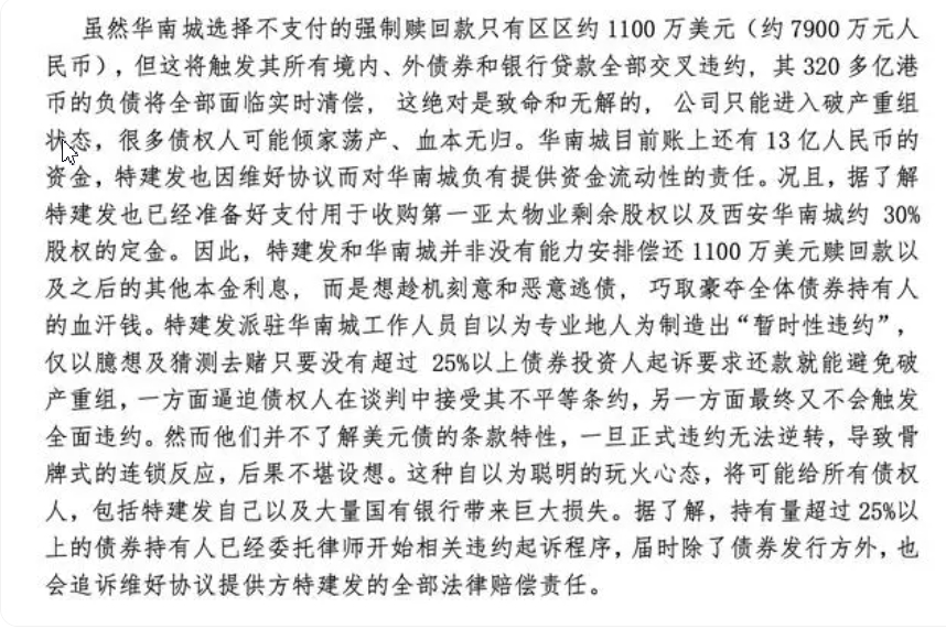 华南城特区建发持股29%,是单一最大股东。之前特区建发入股之后,给境外债出过维好协议,境内贷款出过流动性支持。