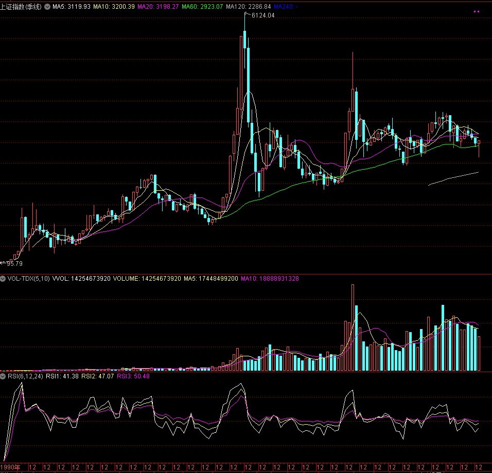 上证指数第一个60季度均线数据是2005年9月30日的1155点,现在是2923点,18.5年,涨了1768点,平均每年不到100点。以前年度基数低,指数涨幅大一些,但分红少,这两年指数涨幅小,但分红多一些,算上分红,上证指数均线的年均涨幅大致在5%左右