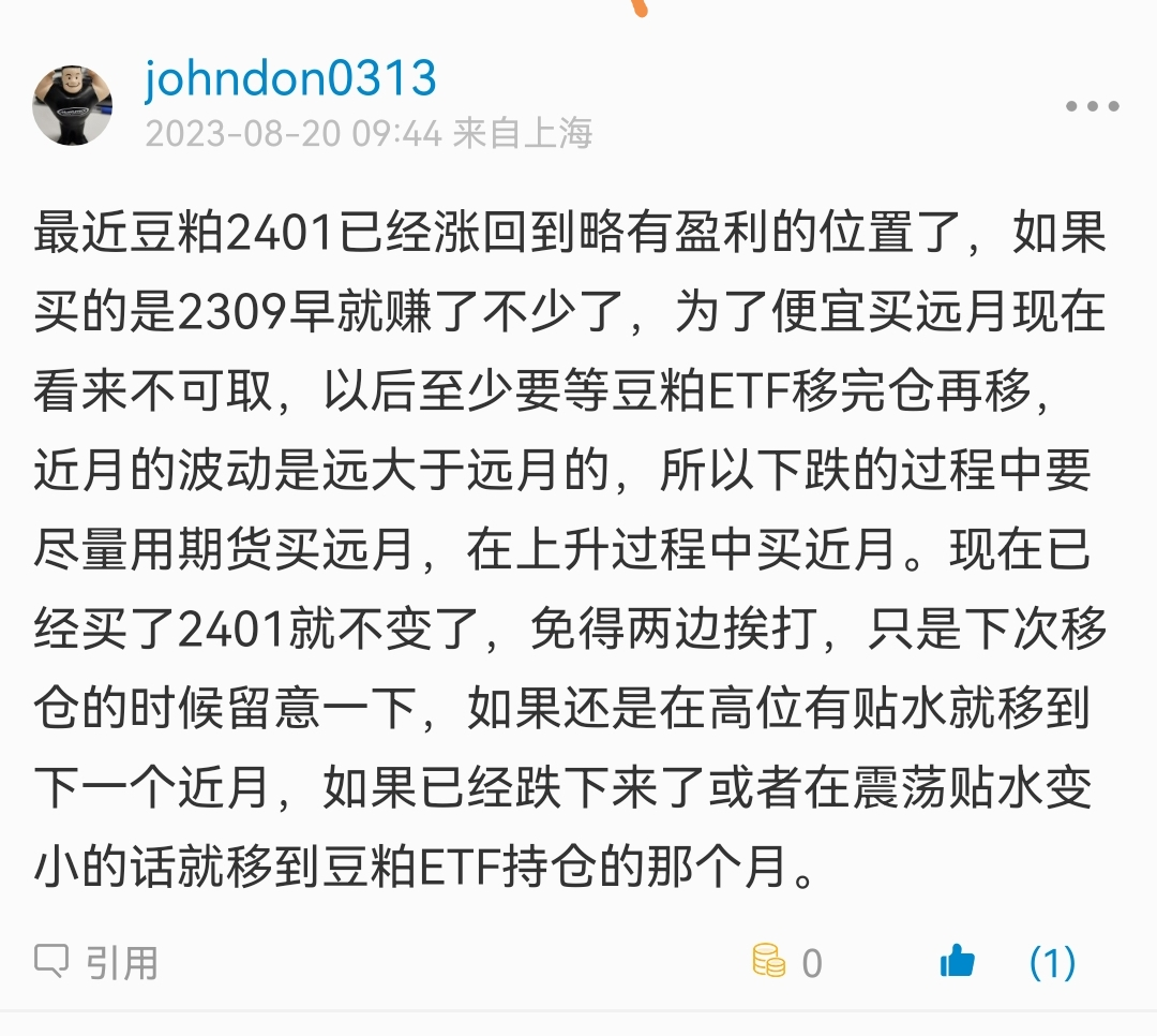 而且豆粕不是做期货跨期的贴水,而是做期现基差的贴水,这个贴水...
