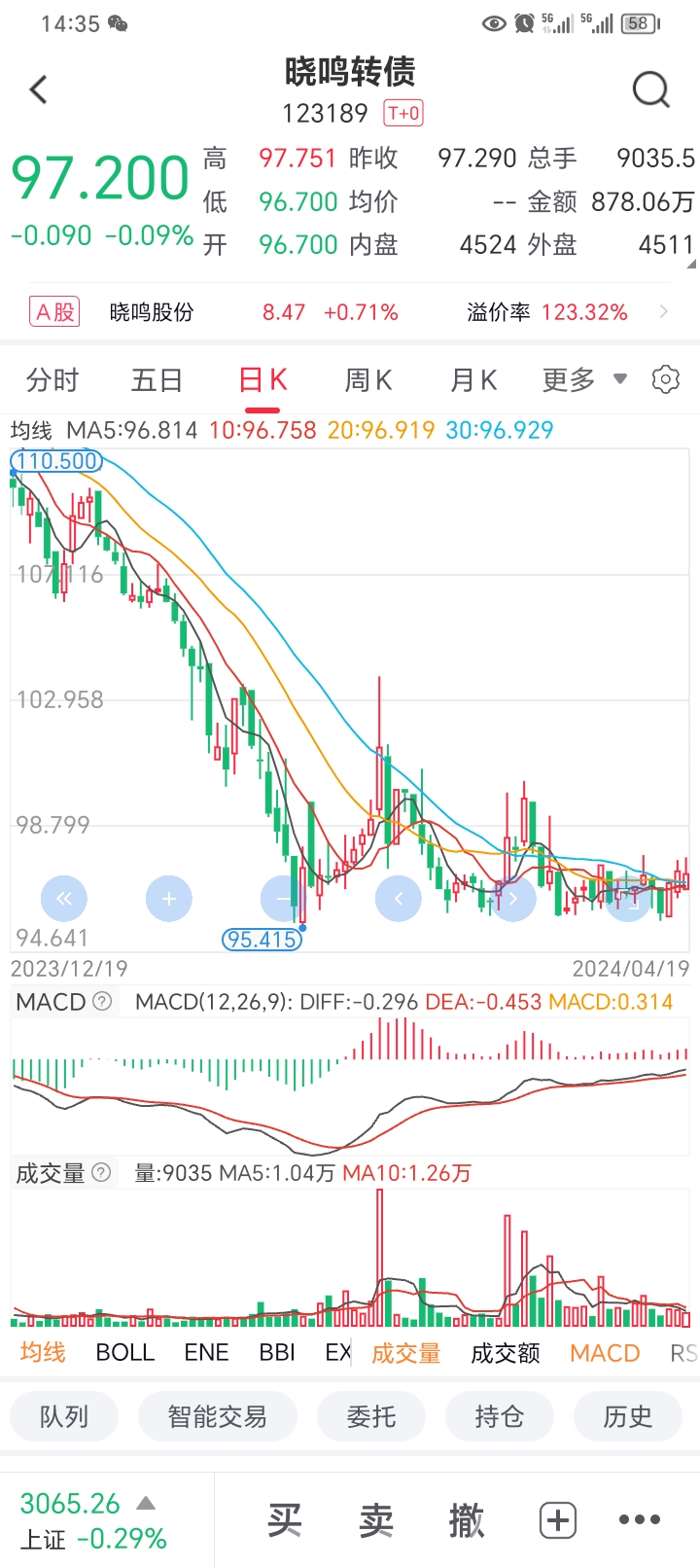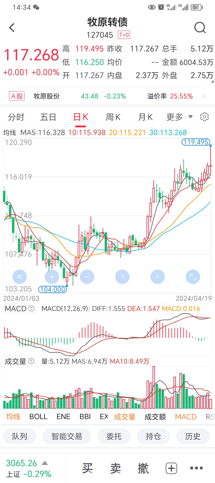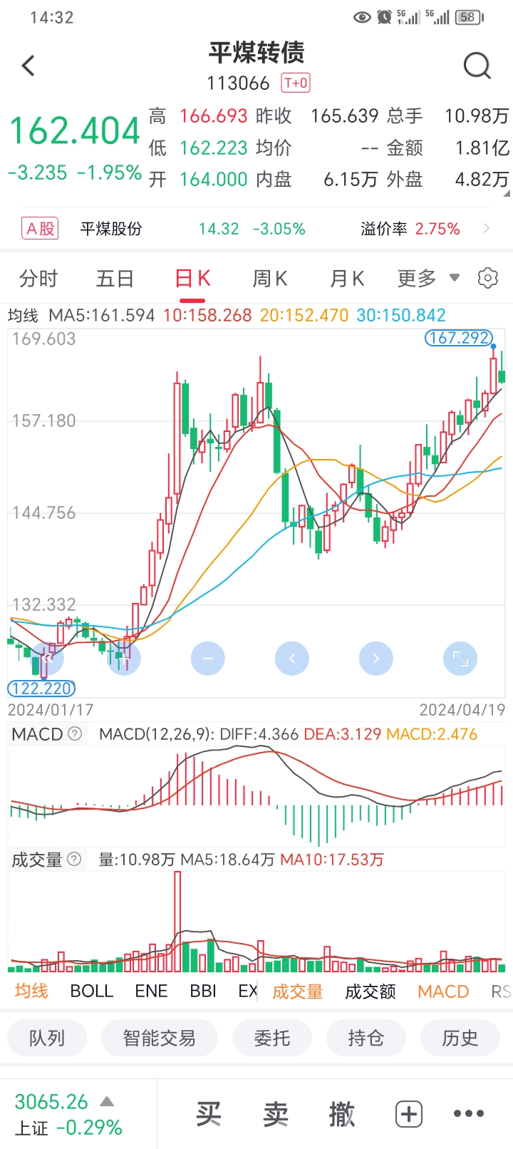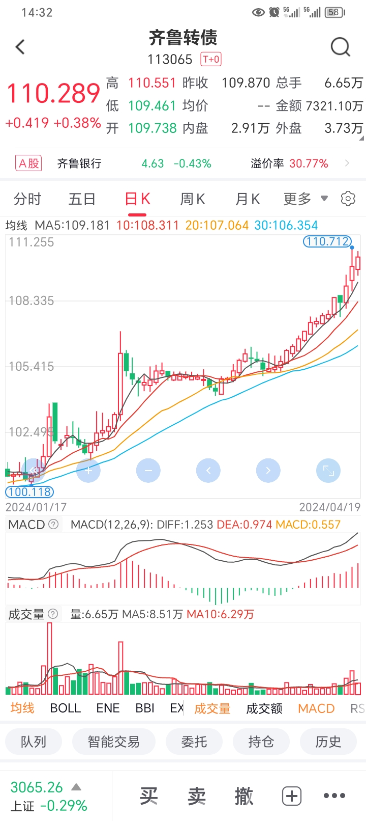 不是说小票不好,只是想表达随着可转债市场的容量大了,韭菜少了,走势分化日益严重啊。作为业余投资者,有人退出不玩了,有人继续坚持,有人做出调整,其实就是为了应对当前的市场,目前从债券层面看,可转债没有下跌的理由,毕竟债券利率走低,对转债还是提供支撑。近期的债券基金火爆,纯债价值被挖掘完毕会不会扩散至转债呢?当年如果不是余额宝日年化利率高达7%,中行转债能到90+?。这也是我继续坚持熬下去的理由和信仰,当然既然分化严重就应该多做功课,包括正股?行业潜力咋样?竞争格局是否形成?国家是否鼓励?负债率高不高?票息如何?正股价格如何?持有期内会不会面退?等等,功课做细了还是能找到错杀的转债。目前,周末选债,自己定了一条针对小票转债,公司负债率不超过30%(当年严格发行转债时,要求不超过40%),具体选一些错杀转债先观察等待机会,价格到位必主动出击。