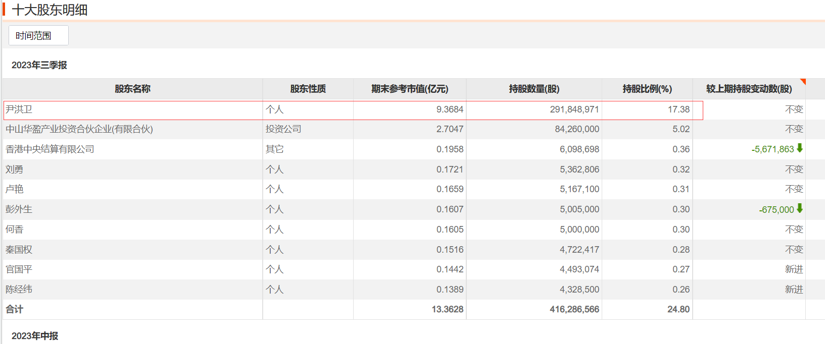我的股票行情软件股东资料显示:尹洪卫、中山华盈产业投资合伙企业(有限合伙)是一致行动人关系组这票我做过功课,当初协议转让的时候把剩余的股权的委托表决权给了华盈产投,所以华盈产投才是控股股东。另外,质押和冻结的股份,可以参与议案投票的。