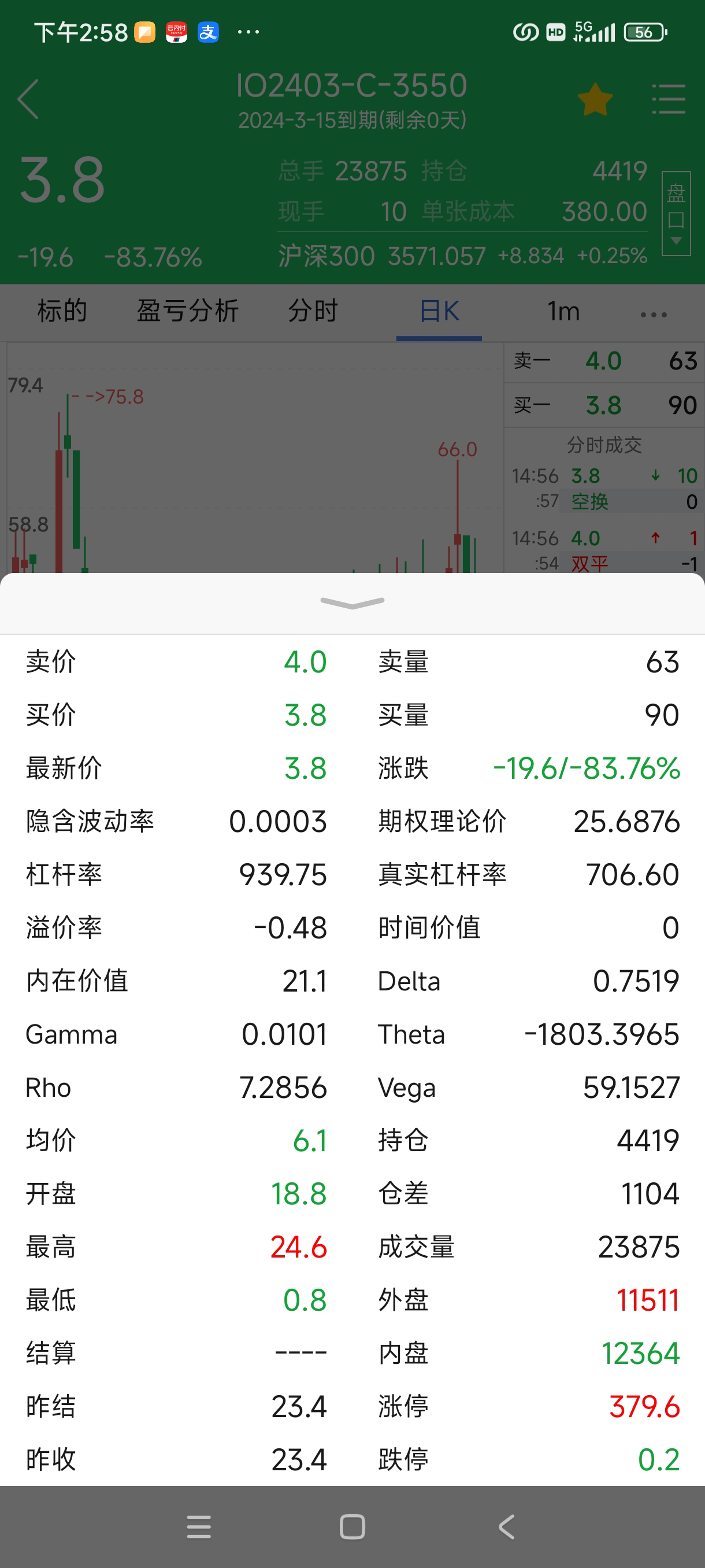 中金所今天公布IF2403沪深300交割结算价为3554.21点,应该是实值的期权,可以行权。