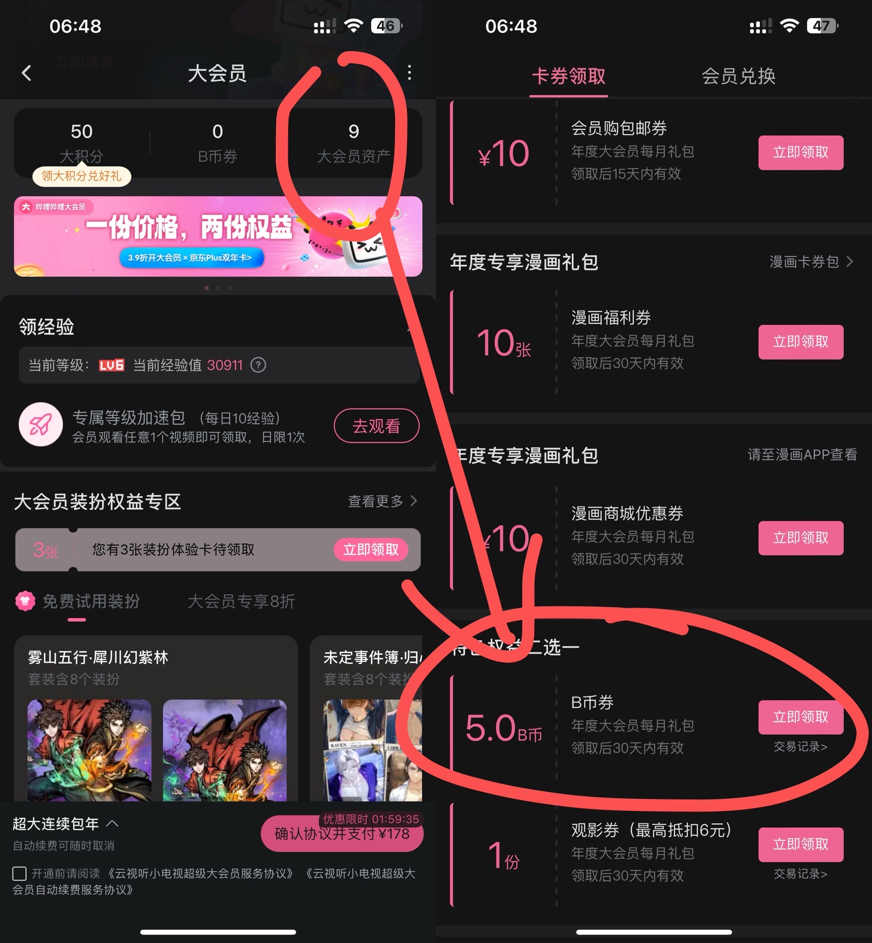 大会员福利:可以每个月领5B币券,可以给Up充电,支持一下喜欢的Up(咸鱼甚至3r收)