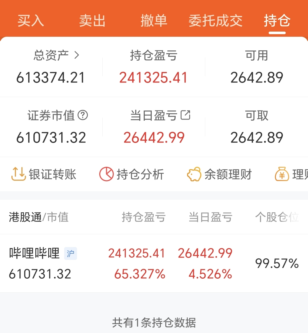 今天早上开盘没多久就把哔哩哔哩全清了,目前看是卖飞的可能性大一些,但是确实有点拿不住了,影响晚上的睡眠了。其实单调个股一直不适合我,整体亏多赢少,这次算运气不错,今年扭亏为盈稍稍赚了一点,以后大概率不会这样赌了。接下来打算一部分小市值大饼,一部分医疗ETF的样子,这样既能享受一下买进卖出的操作感觉,又不至于太焦虑影响睡眠。