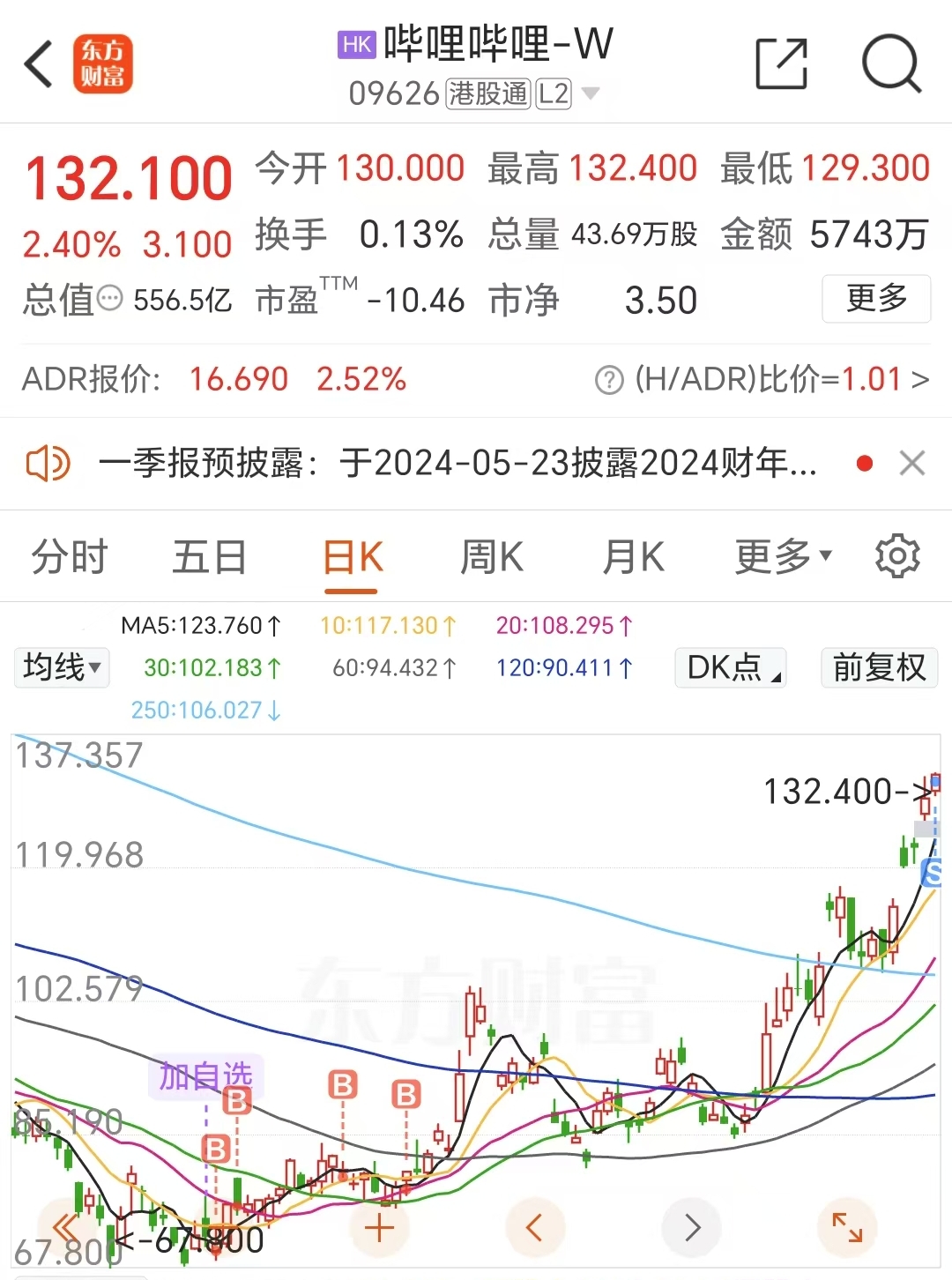 我122保本出了B站,踏空了10%+,现在后悔不已,能不能回调再给我一个上车的机会?