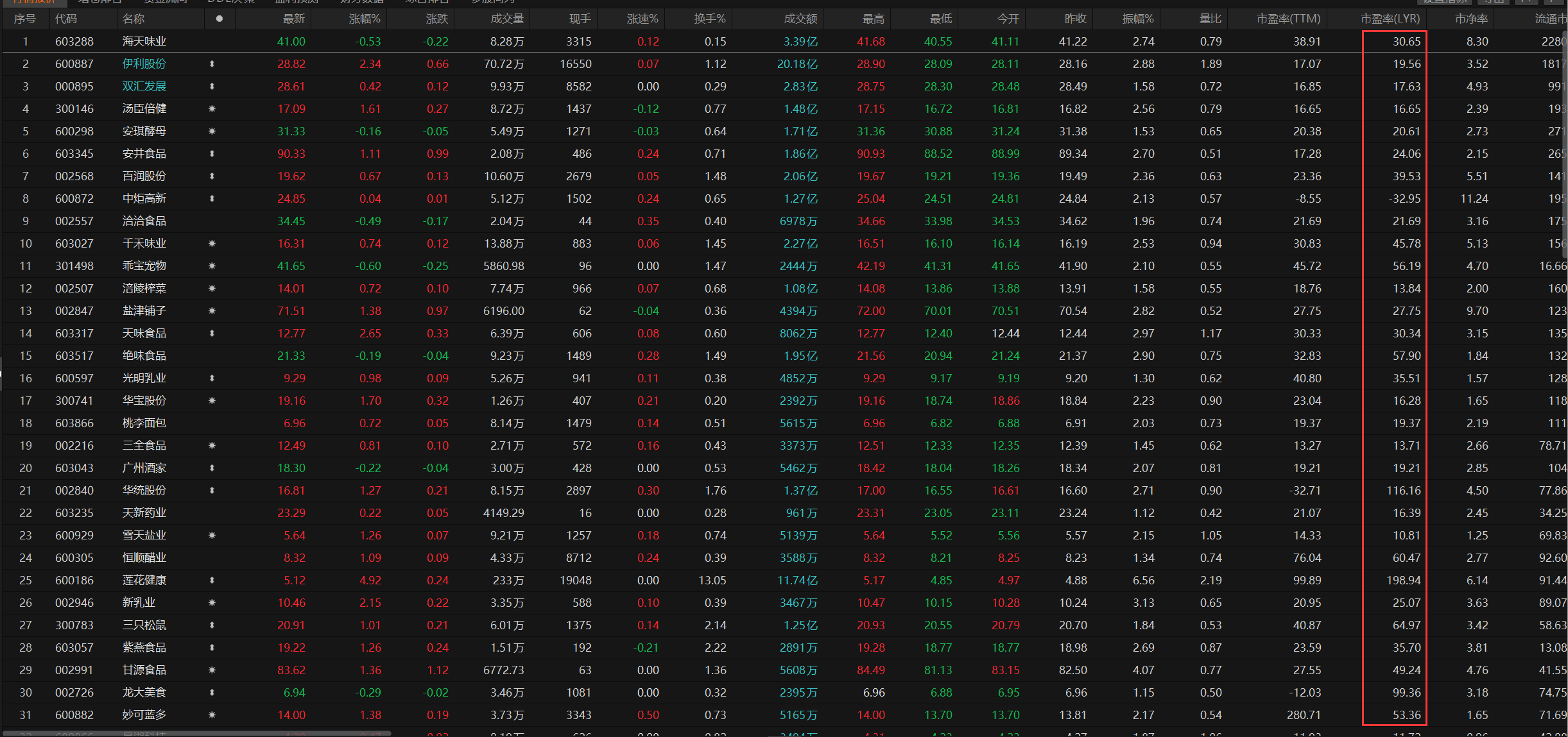 我现在持有伊利股份、双汇发展、元祖股份三个食品股,都是只有十几PE分红还十分可观