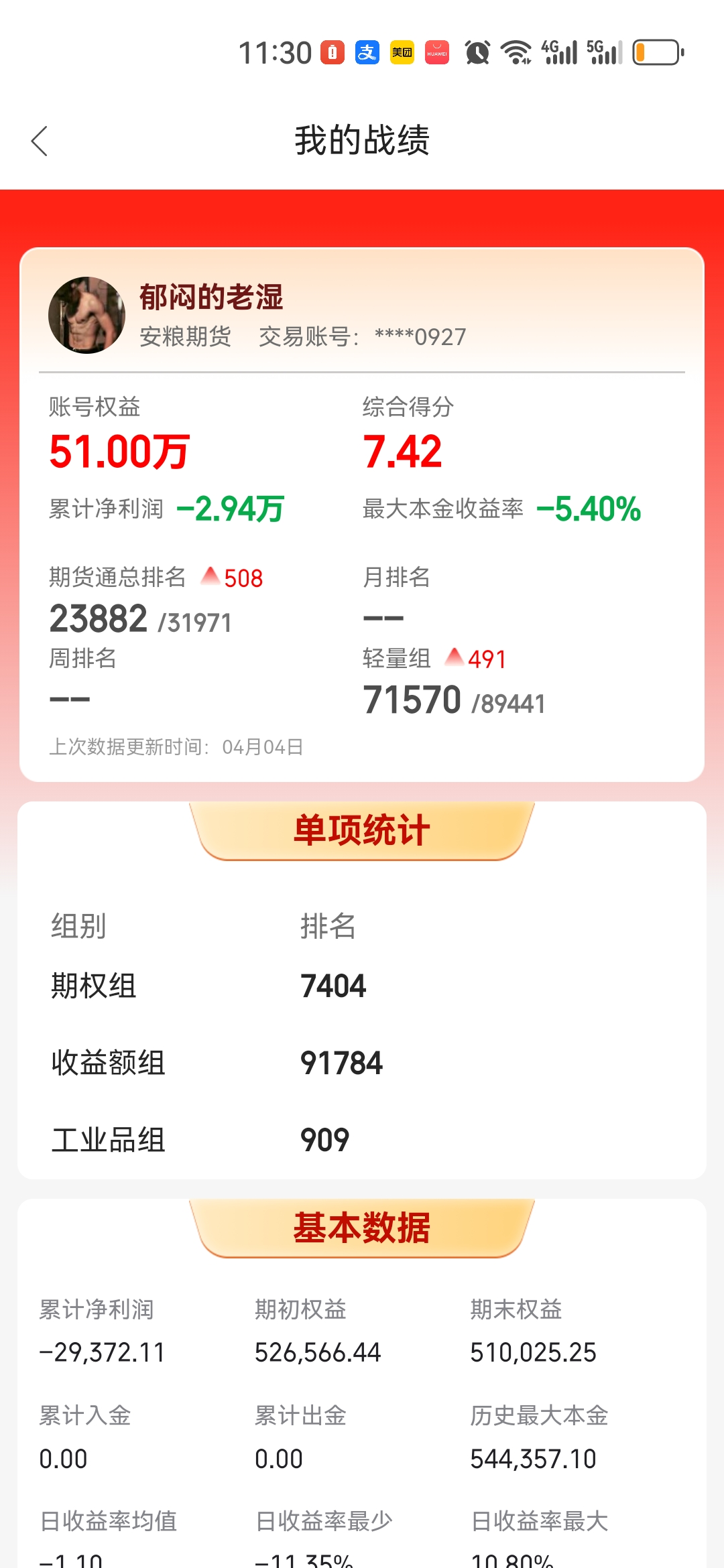 比赛记录有问题,从初始日算我应该才盈利10万块钱来着。难道可以卡Buff拿奖。。。