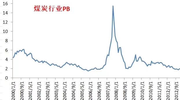 比如,这是2012年底煤炭行业的PB估值: