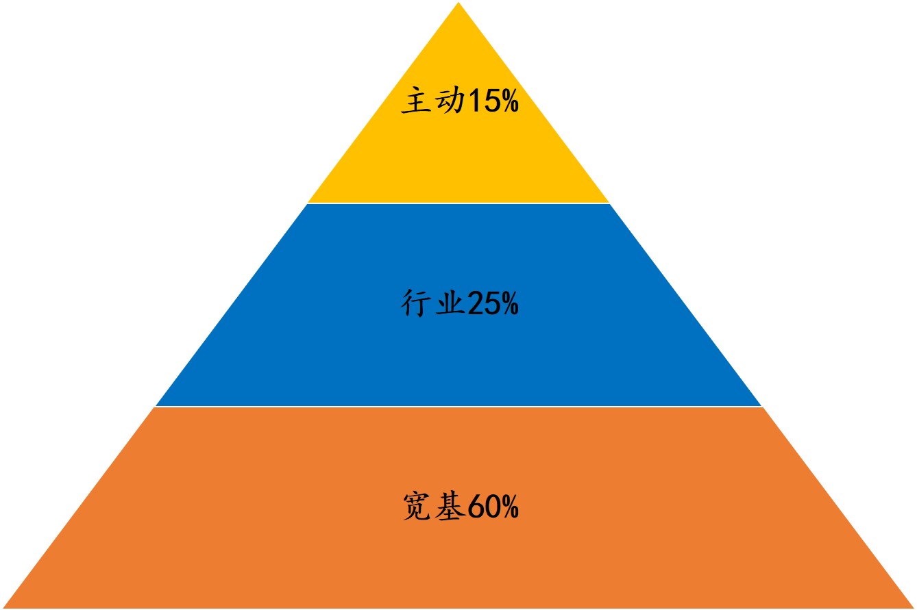 比如,在我们这个投资金字塔里,考虑到行业相比宽基,有更高的看走眼的风险,我们就只愿意给行业20%或者25%的仓位。那我们就固定死了,只要行业基加到总仓位的20%或25%,就不再加仓了。这就是整个行业指数基金投资仓位上限的管理。