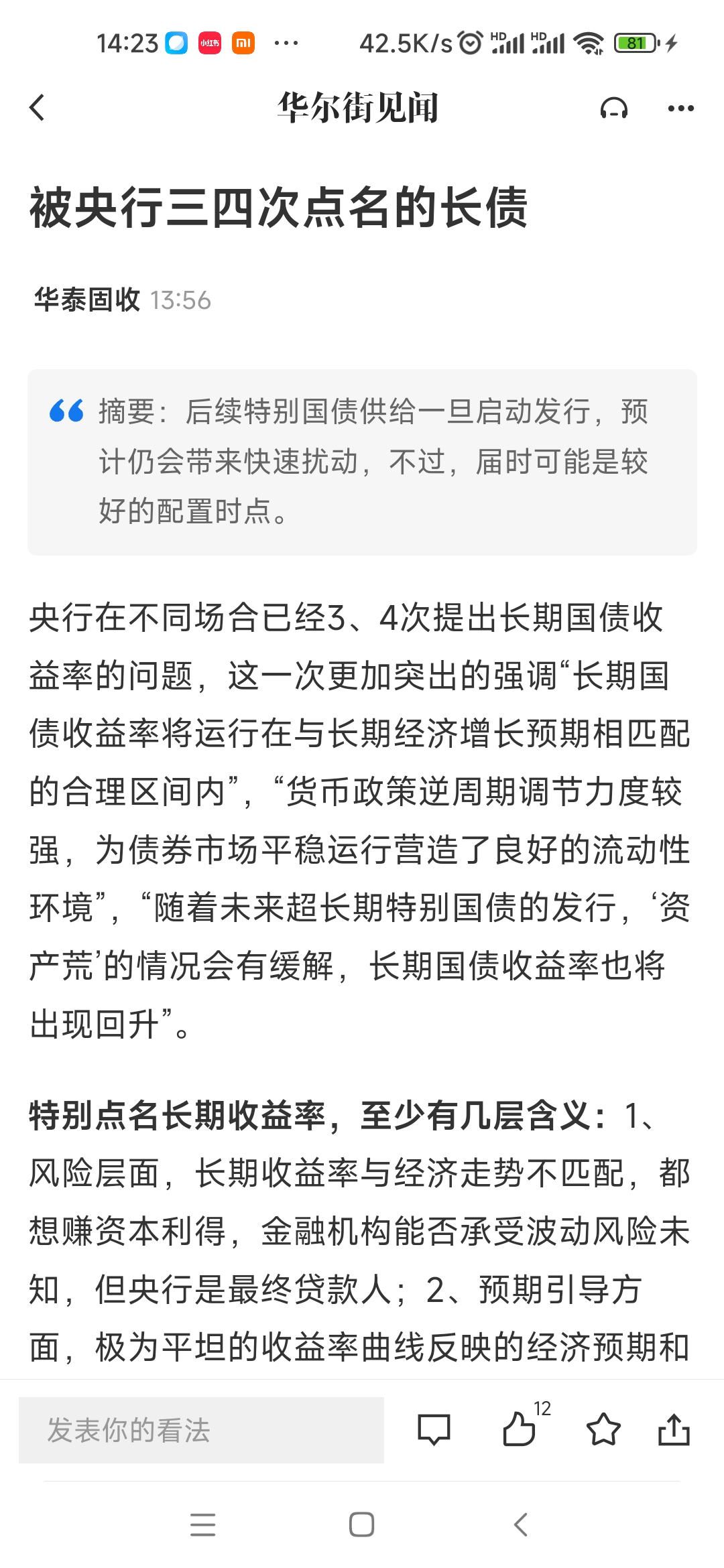 央行买国债等于增加流动的基础货币供给,并不等于QE放水,决定的是中国的资产负债表。有兴趣可以看看我之前转发的一篇文章,它从股市的角度有说为什么央行需要自己下场买国债。看了一半,看不下去了。我和作者至少有一方才疏学浅。
