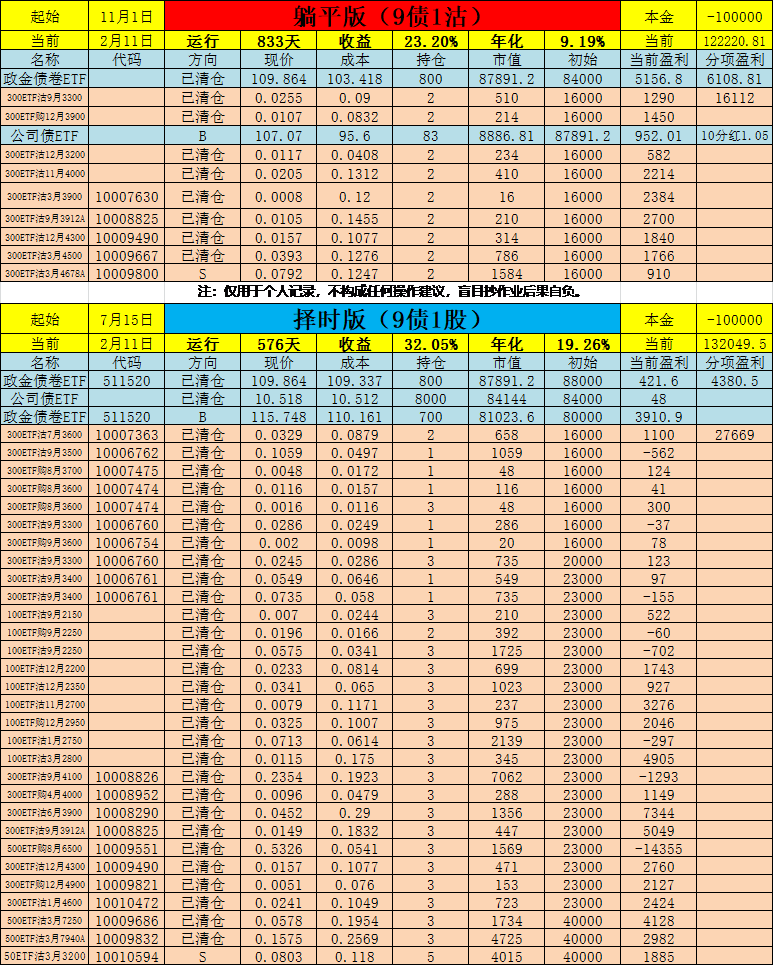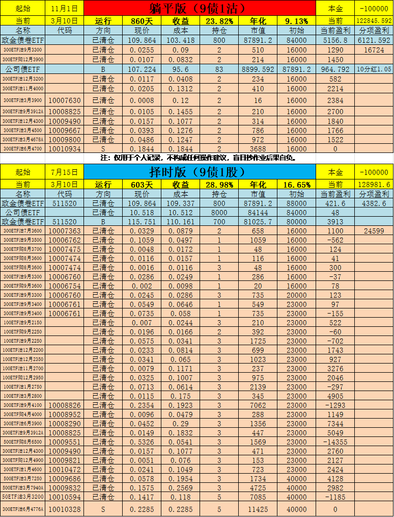 看多债市,看空股市,这个组合的意义是什么呢?如果债市跌、股市涨,亏的多的都折了债多股少主要是为了降低波动,主观带有择时的味道。可能到10月份或再晚一点儿,债券端标的就换成其他的了!