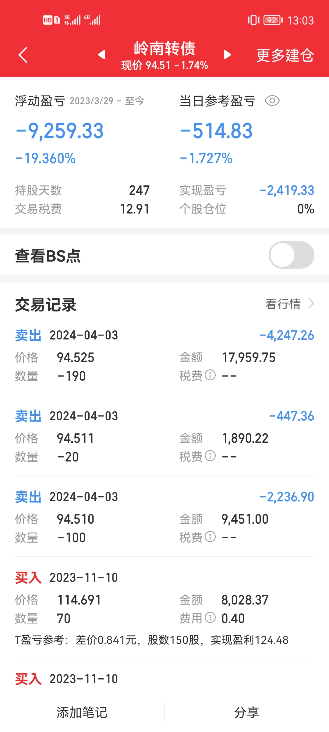 终于忍痛割肉了,亏掉了买转债以来最大的一笔。握爪~ 同是单债最大亏损额