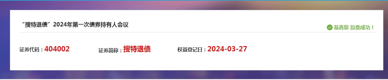 “搜特退债”2024年第一次债券持有人会议 (召开日期:2024-04-03)正在投票中...