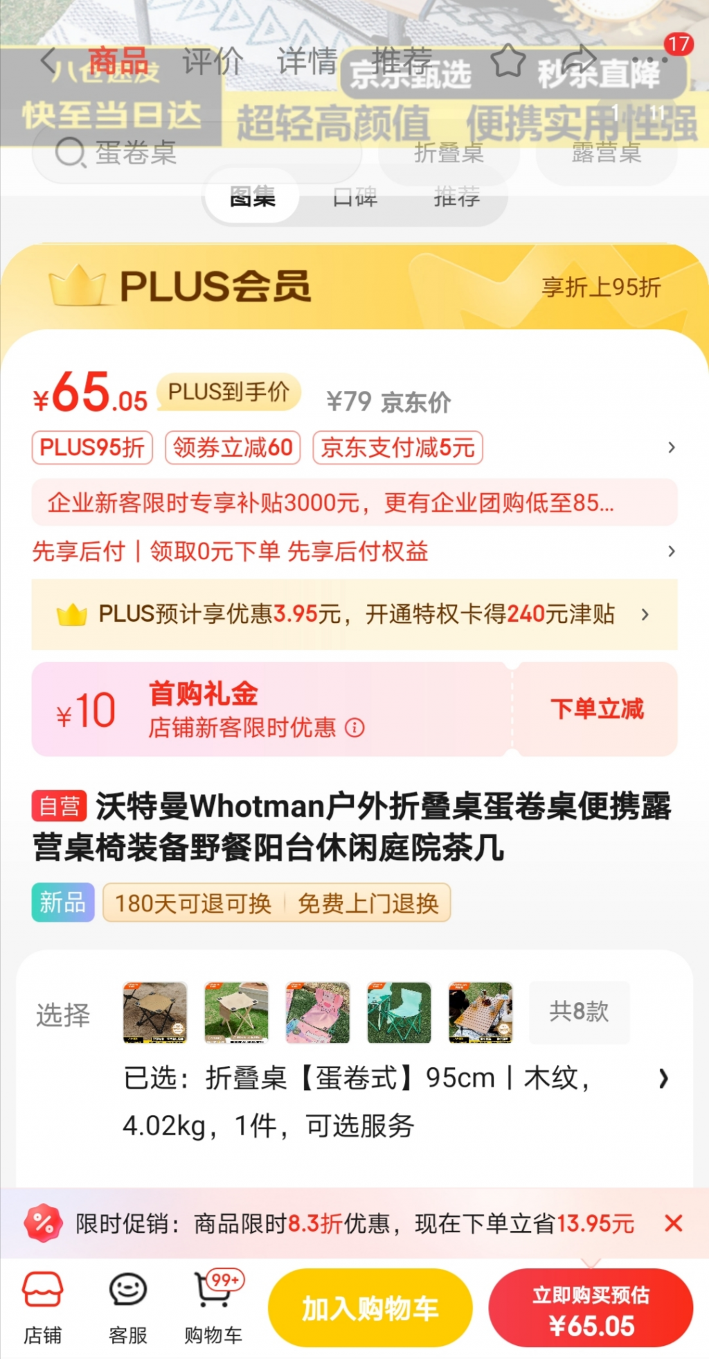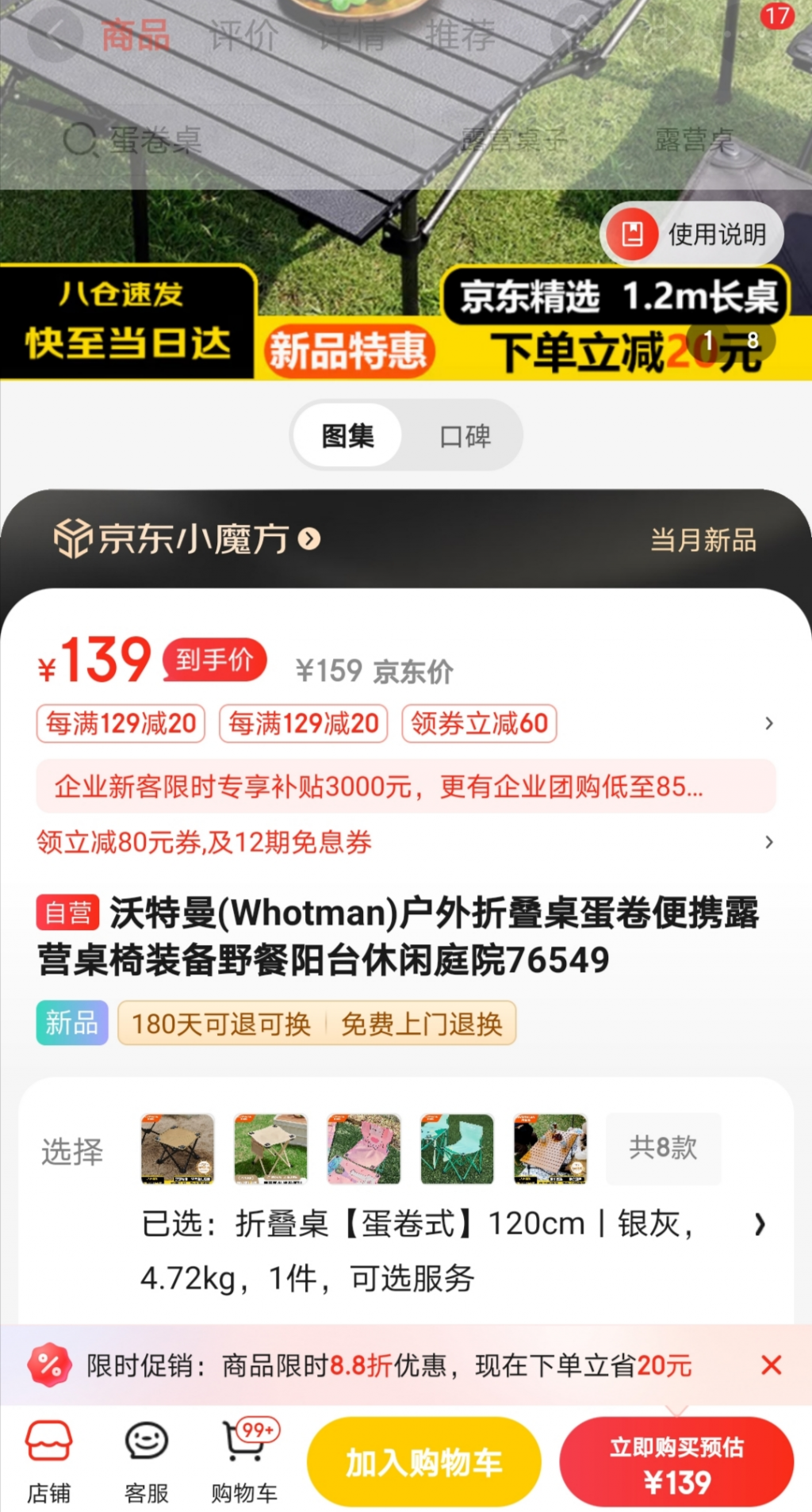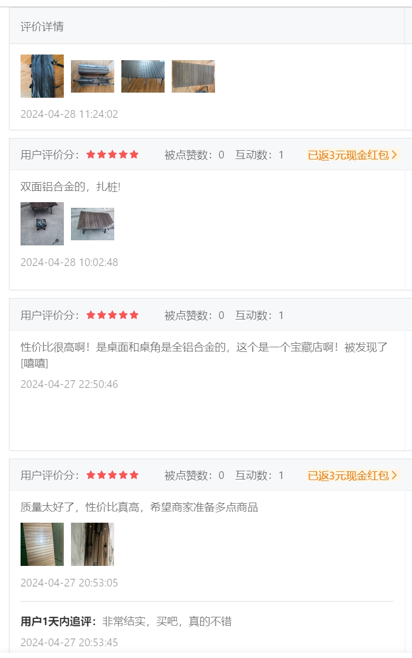目前体贴出来的商品详情里头信息太少了,既没有展开后的长宽高,也没有用的铝合金的厚度,甚至3个不同款式还沿用了同一张图片。。。ε=(´ο`*)))唉,不考虑价格,你这链接做的都太苍白了。随便翻几个热门的链接,跟人家学学“店铺装修”