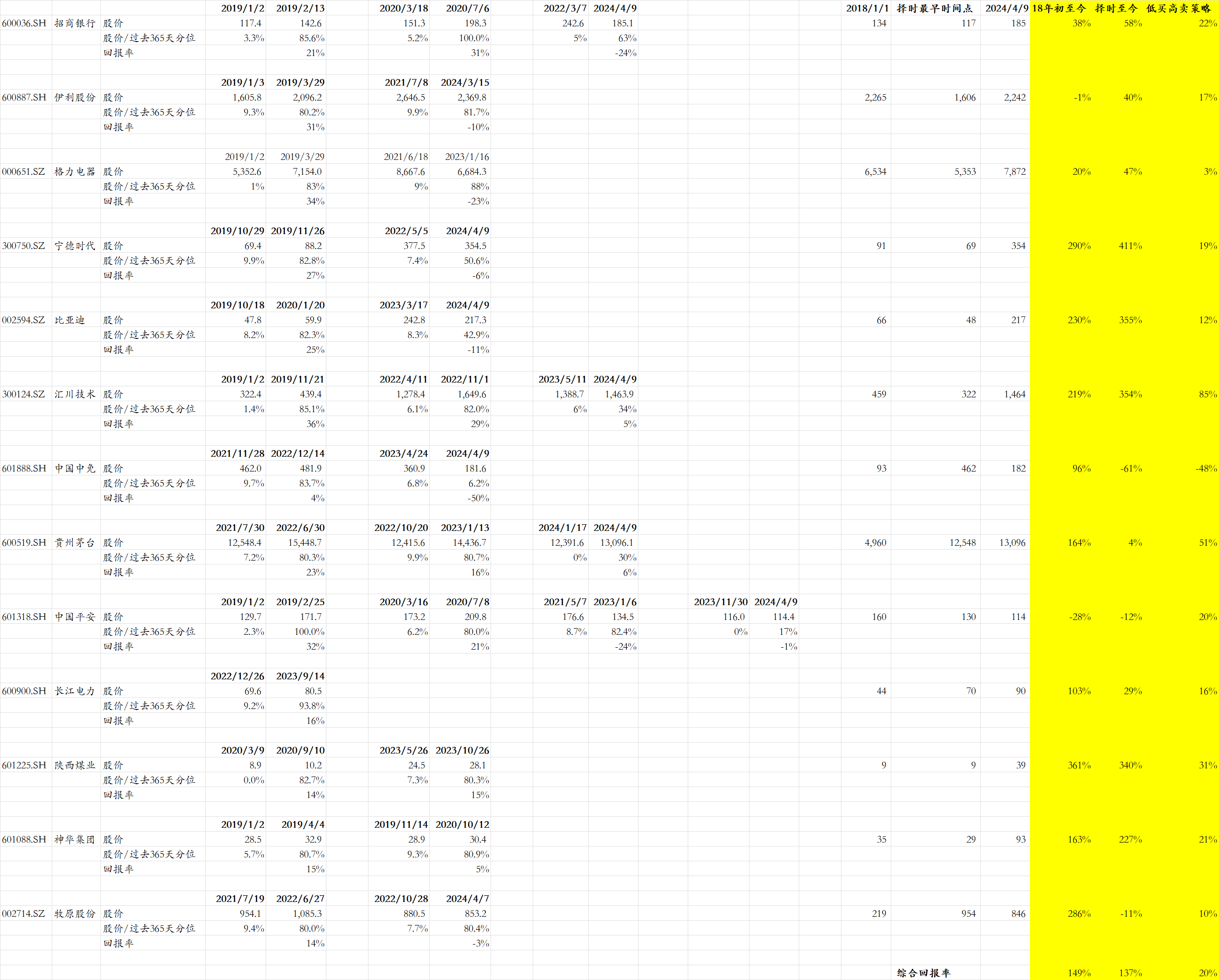 1. 一旦股价跌破过去一年的10%分位就买入,涨破过去一年的80%分位就卖出