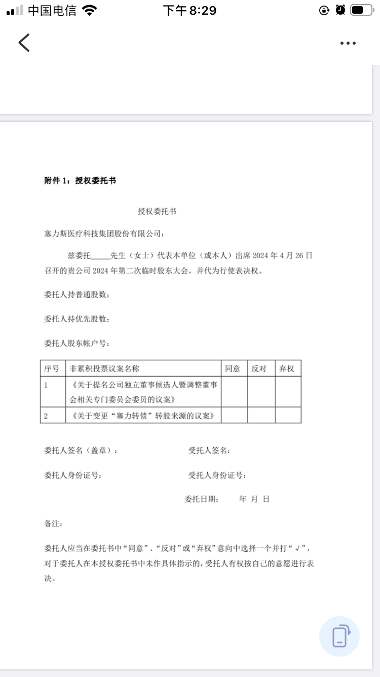 于变更“塞力转债”转股来源的议案》,尚需经 2024 年 4 月 26 日股东大会审议