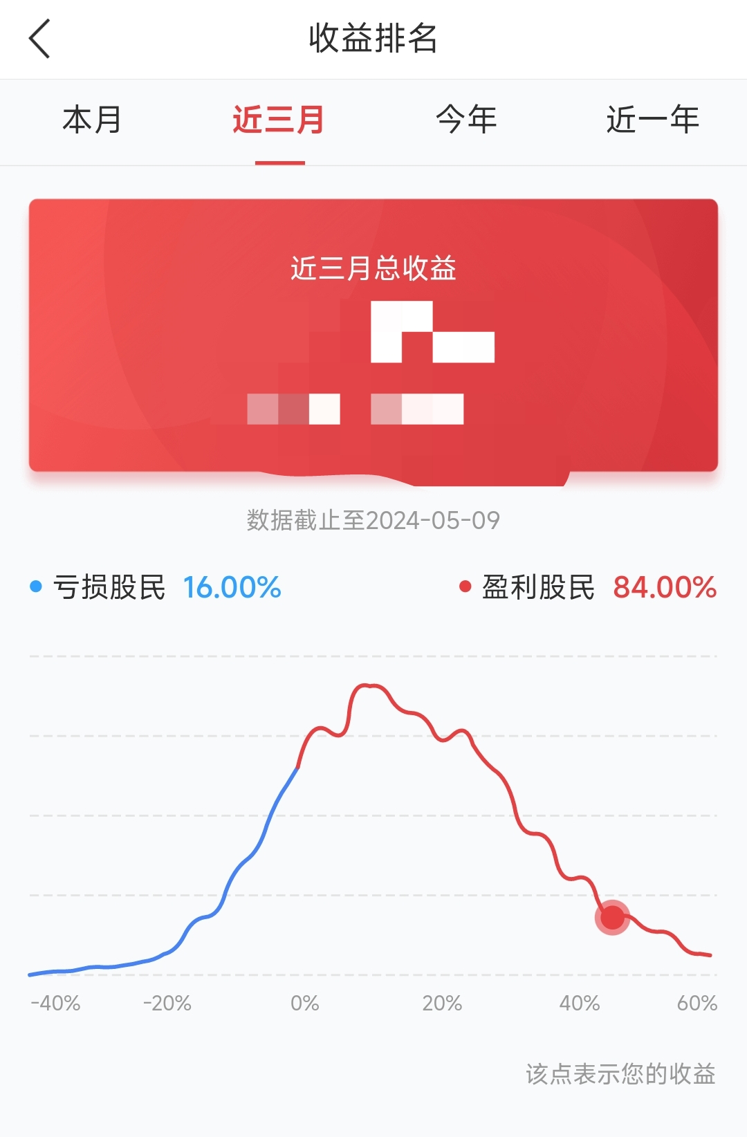 附图,证券收益表明最近3个月超过百分之八十的股民是赚钱的。是不是牛市来了??我笑死了!最近3个月赚钱的股民占比80%+,主要原因不是因为最近3个月暴涨了,而是因为“3个月”这个时间窗口刚好划过了春节前暴跌的区间。