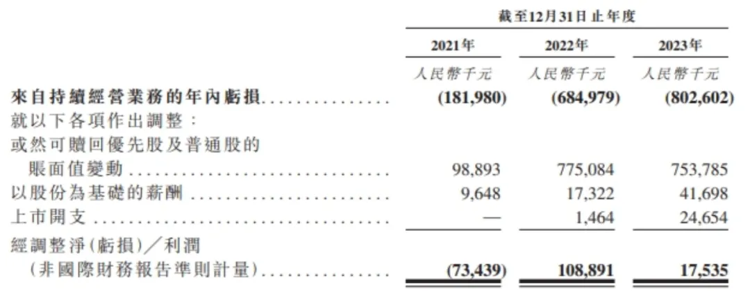 此外,截至2021年、2022年及2023年12月31日,累计亏损人民币18.962亿元、25.66亿元及33.687亿元。亏损主要由于过去于研发方面的投资产生的亏损及或然可赎回优先股及普通股的账面值变动。