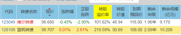 维尔转债和蓝帆转债下修和回售的担忧