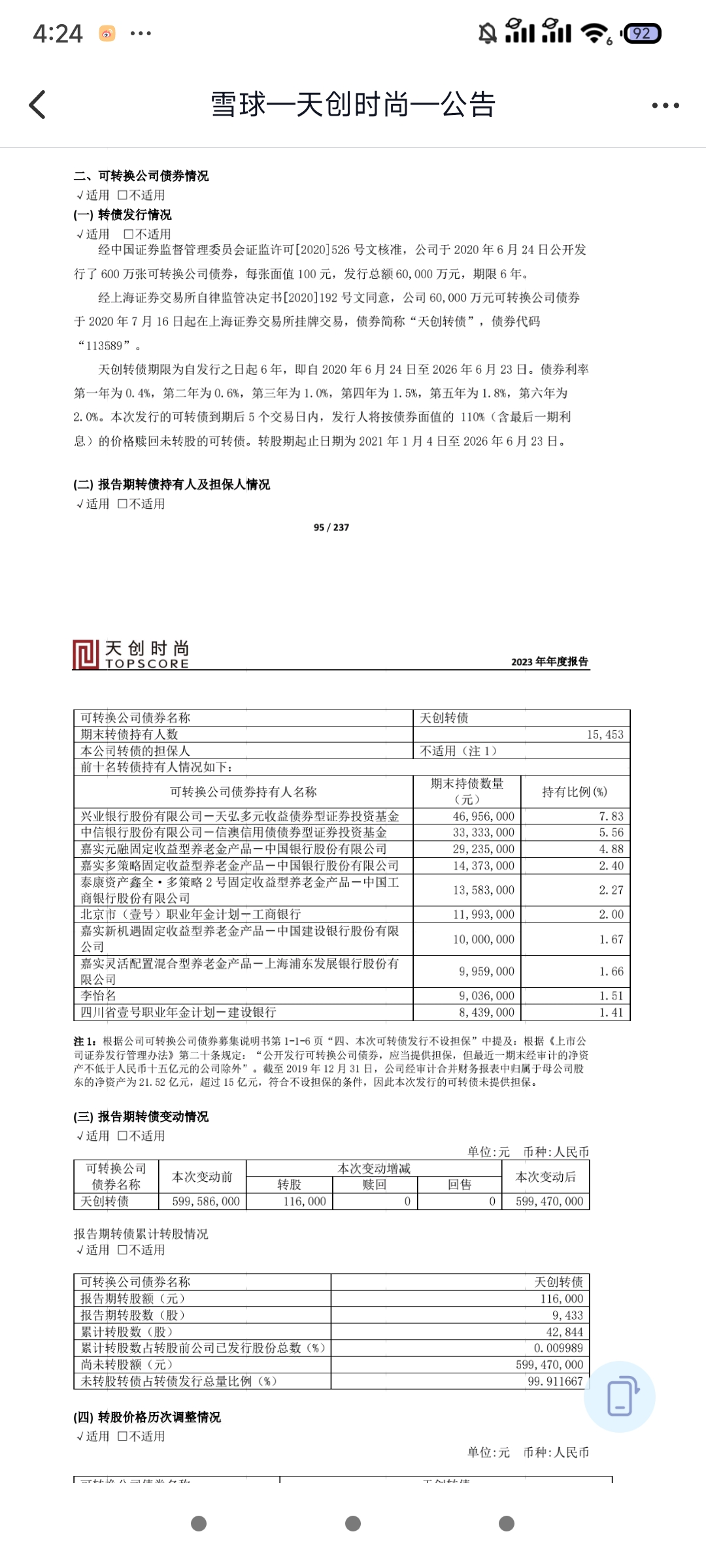 给天创打了电话,帐上钱没问题,7月转债要么回售要么下调。第三方重审改变不了今年戴帽的问题,只是保证2024年1到4月财报没问题,为2024年年报摘帽准备。02039301538口拙,不会问。没持有这个债,手上有笔小钱,看到有暴雷债就多看了几眼,瞎说两句,楼主随便听听。