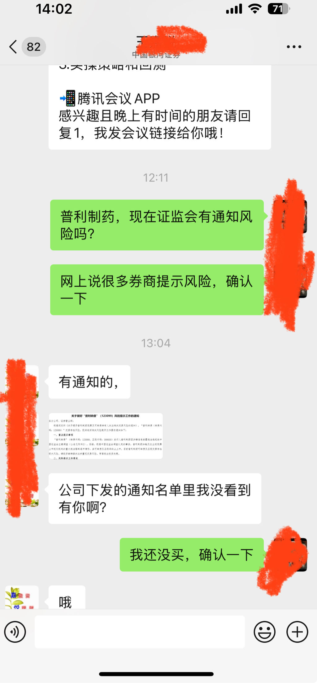 话说有的投资者接单证券公司的人电话,注意普利转债的风险提示,我想问下1:是否真的有投资人接到电话!2:是否方便透漏是正股的风险还是转债?(我持有可转债,现在没接到电话)3:是啥意思,难道正股要退市或者ST的标准操作么?4:如果普利制药真的退市了,算不算内幕消息暴露呢?哈