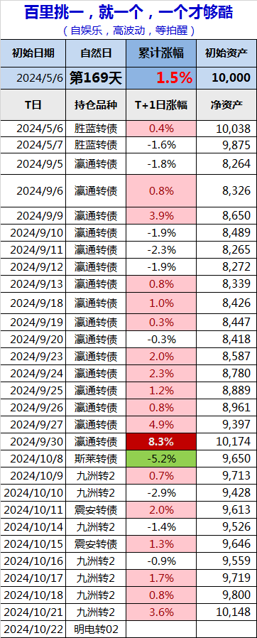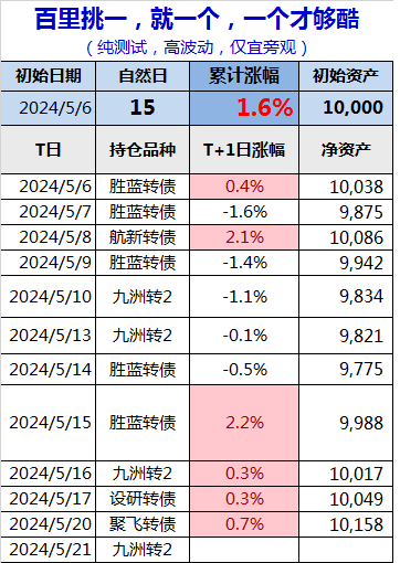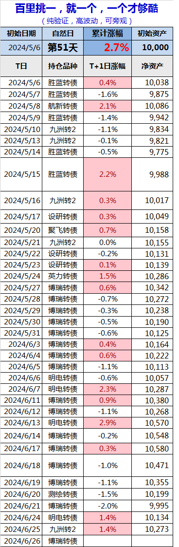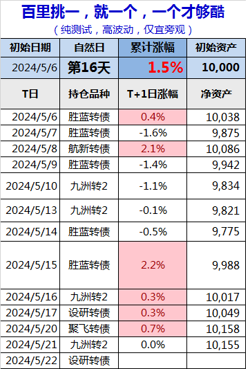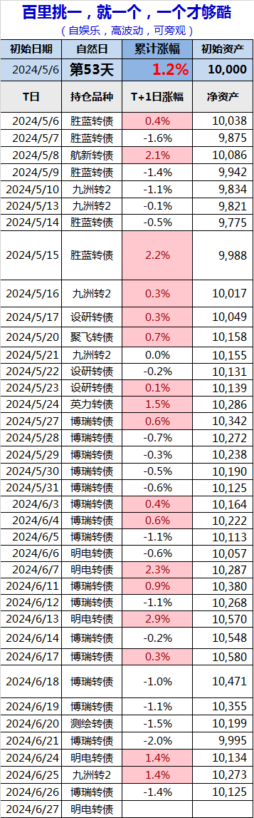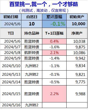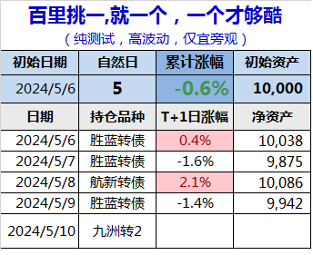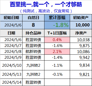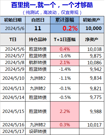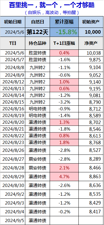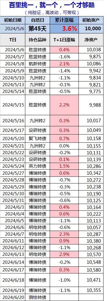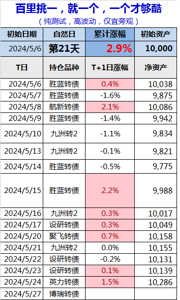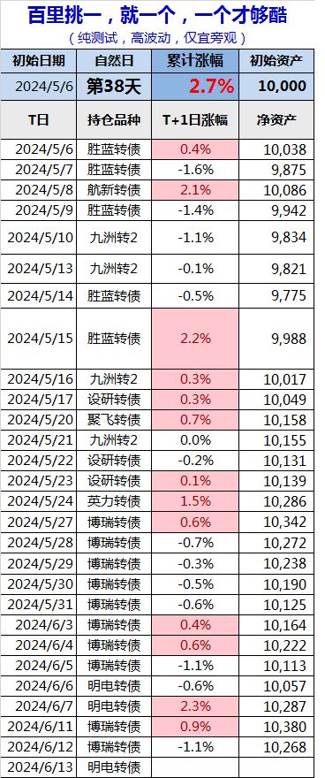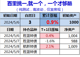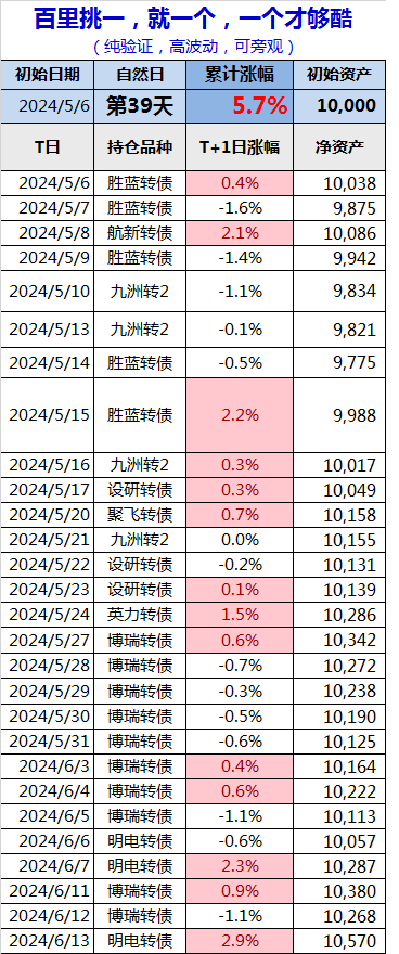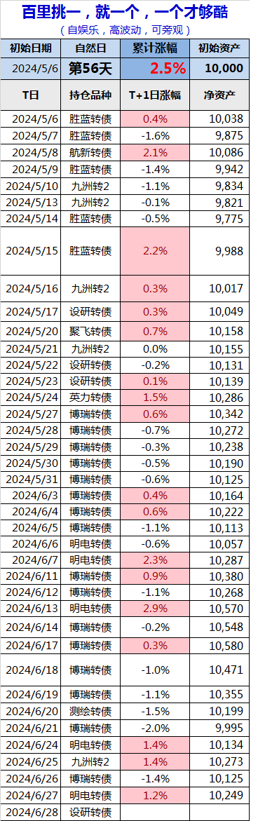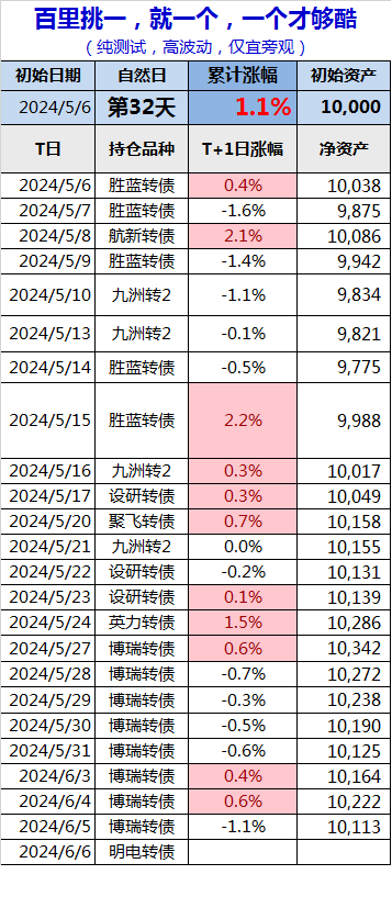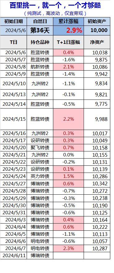 今日启动,以昨日收盘价建仓,初始持仓: 123143 胜蓝转债 125.758