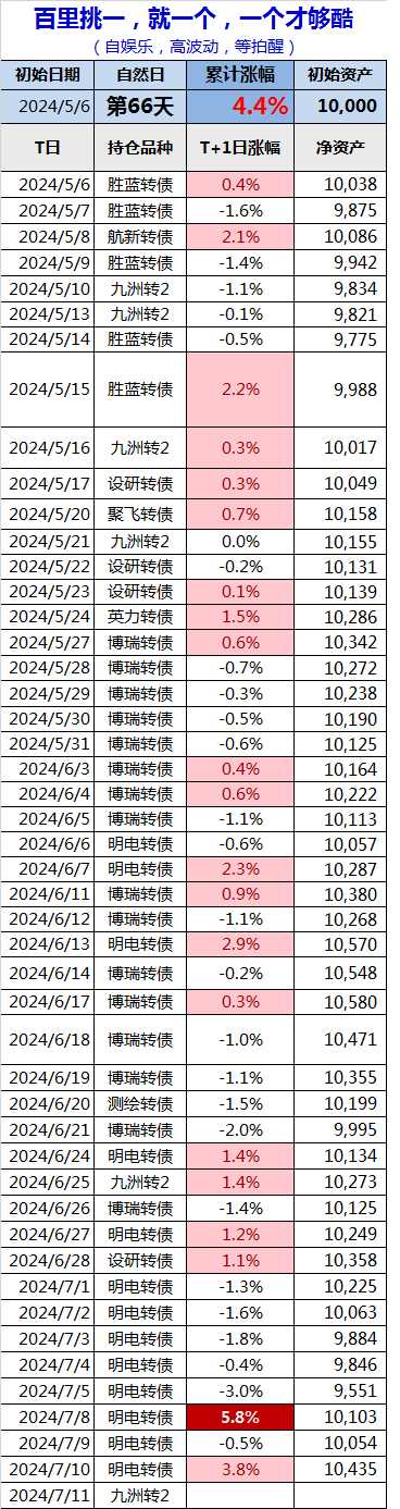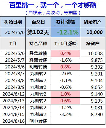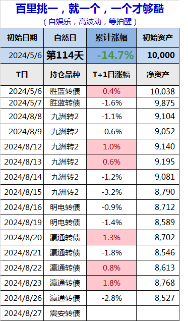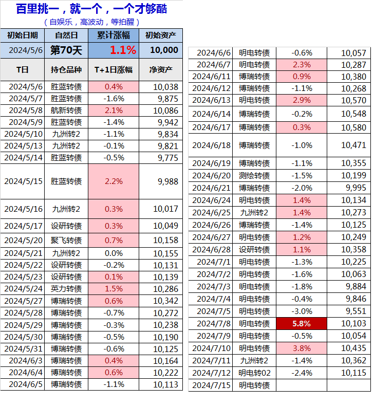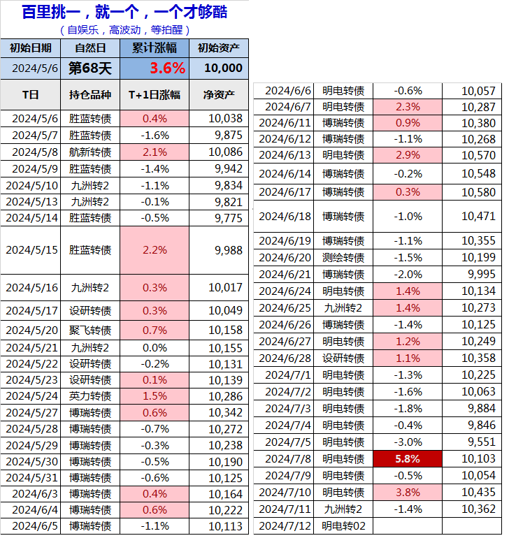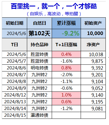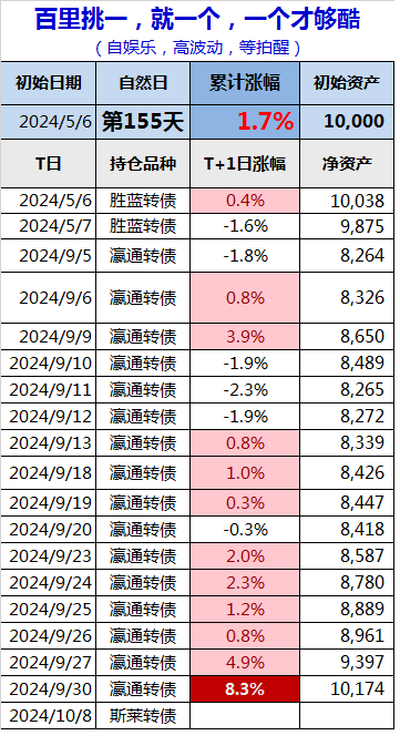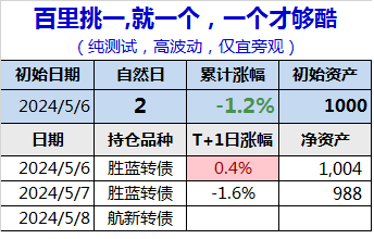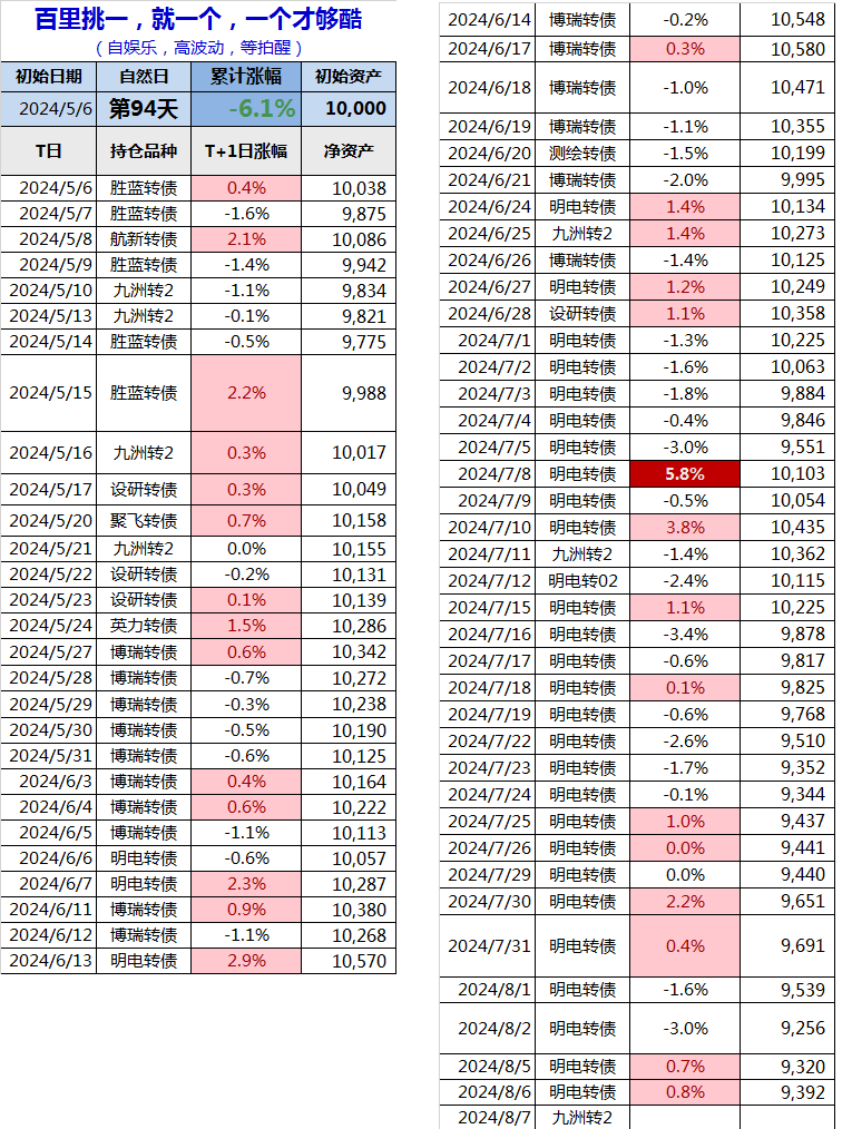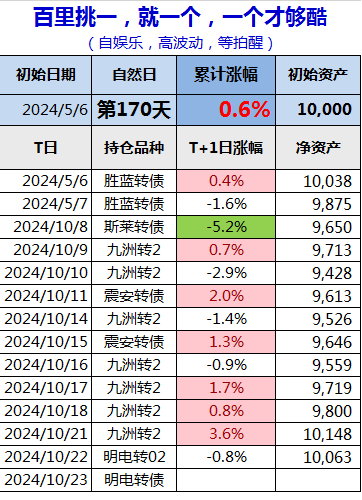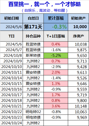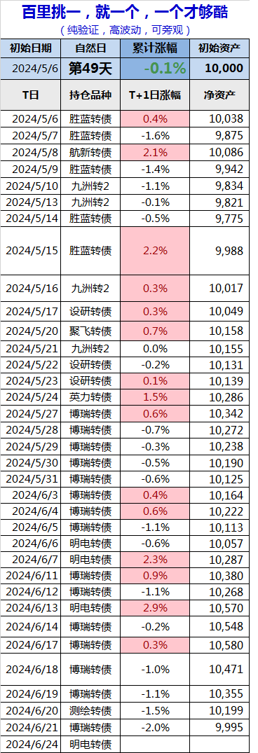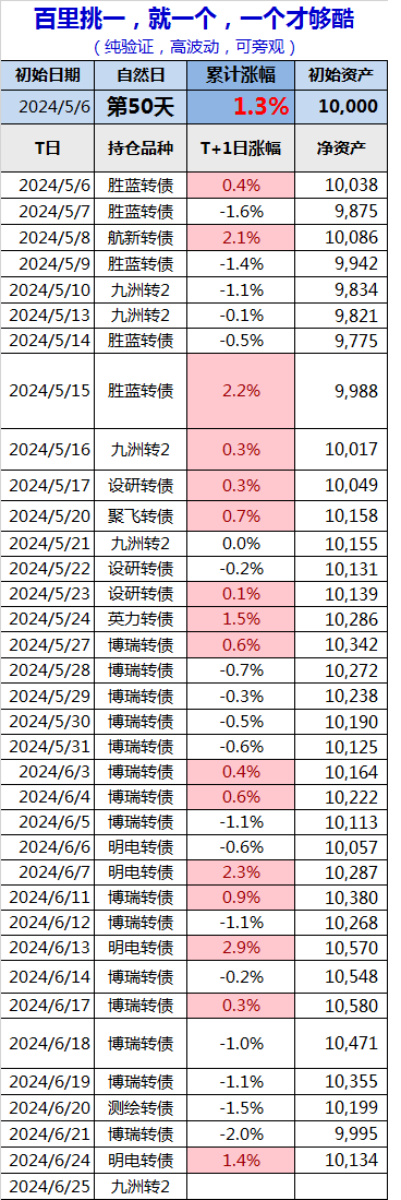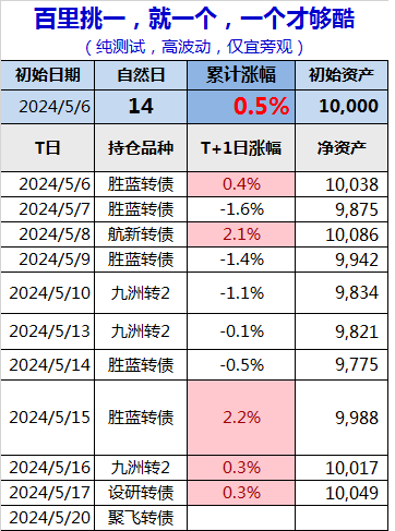 今日启动,以昨日收盘价建仓,初始持仓: 123143 胜蓝转债 125.758