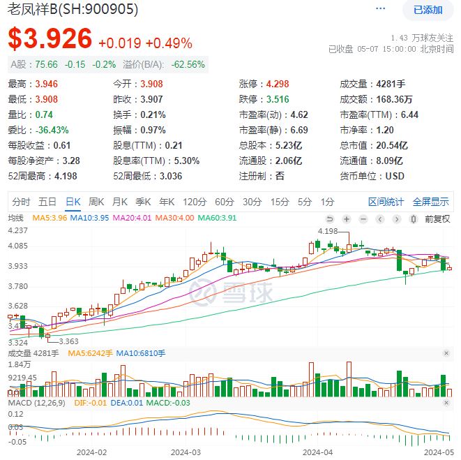要是有长期不用的钱 可以入手B股的老凤祥 ROE长年>20% 较高的股息率5-6% 美元计价 相对于A股有60%以上的折价率