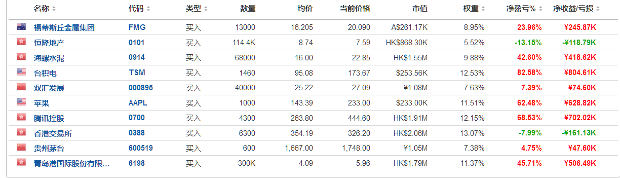 这个持仓要说明2个问题,第一,投资最重要的是资金管理,大家看一下持仓权重,大部分资金都是买了苹果的债券,吃美联储的红利。腾讯和苹果应该下重手,恰好说明自己的资金管理能力还是有待提高。