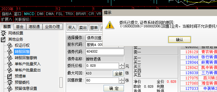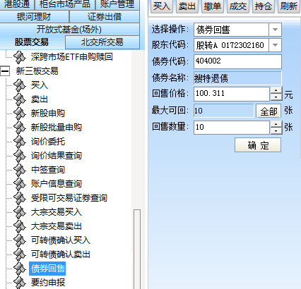 我有京市权限,在京市及三板可转债下拉有回售菜单,只要填入数量就行了。