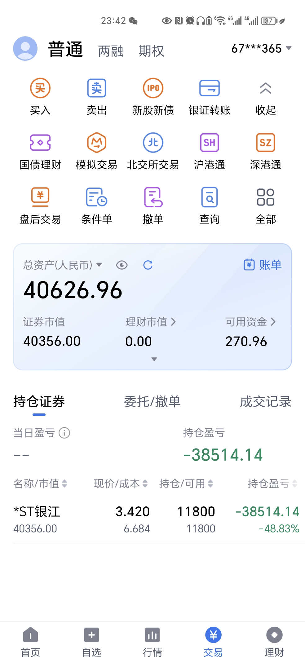 07年是在6千点跌到5千点的位置入市的,当时入市本金20w 第一支股是中国人寿 某段时间特别迷信喜欢用带买卖点的软件08年金融危机的时候最低只剩了5w不到。后来09年行情好的时候大概高峰是回本在12w不到吧。后来12年因为做生意 没怎么操作了 ,大概拿出来8w。但是平时还是关注股市的。15年因为生意占用资金,没有炒股躲过了股灾。20年春节前 我赌疫情扩散不住 闭市前买入了医药股 短期以及后期我妈追加的差不多到20年4月账户本金差不多有20w 经历了我爸四年的刻苦钻研,不管看湖北卫视股票节目 还是抖音直播 抖音大v的讲股市,把新闻的消息当做买股参考 ,看到什么概念火就买什么概念。努力的炒股在今年踩坑银江技术终于到今年5月份只剩4w本金。
