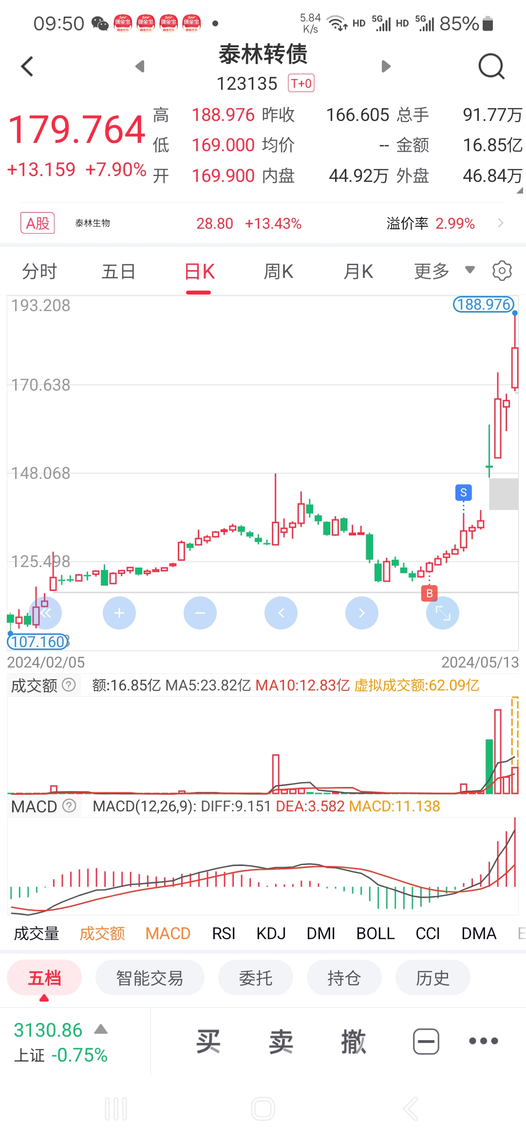 转债全天成交了582亿,指数下跌了0.35%,大体正常...
