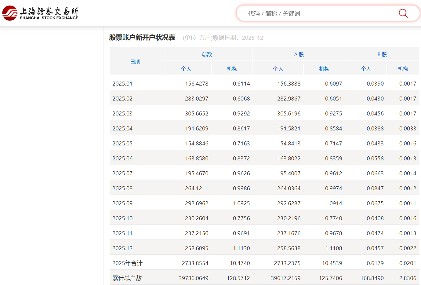 2024年1-7月,上海交易所个人股票账户新开户1059.39万户,同比下降-27.71%