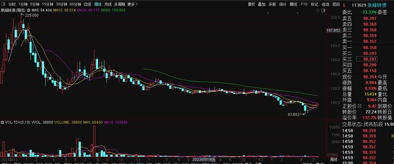泉峰转债 从 225跌下来的, 最近 2年没有反弹, 单边下跌, 让人感觉马上就要破产退市