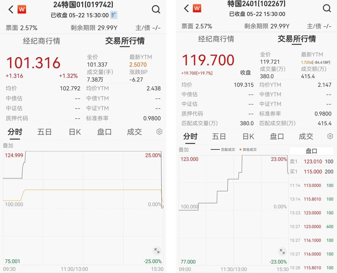 昨天最吸引人眼球的莫过于刚上市的30年国债的爆炒了!尤其是沪市的这只24特国01(019742)。上午直接被拉涨25%,对应收益率直接被拉低至1.5276%!