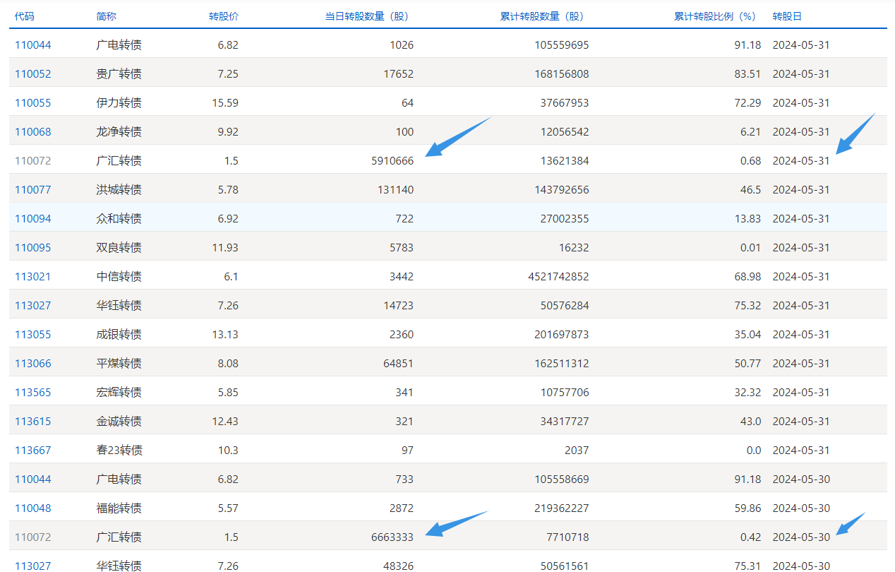 请问是在哪里能看出来转股的?小白想学习下。