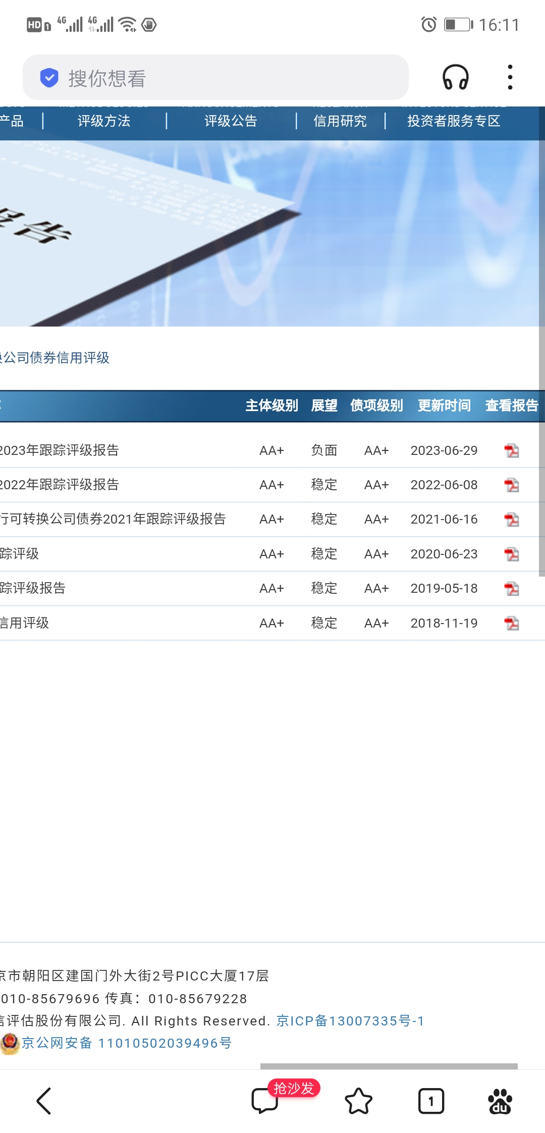 六月份应该出新的评级跟踪报告,去年展望就是负面,