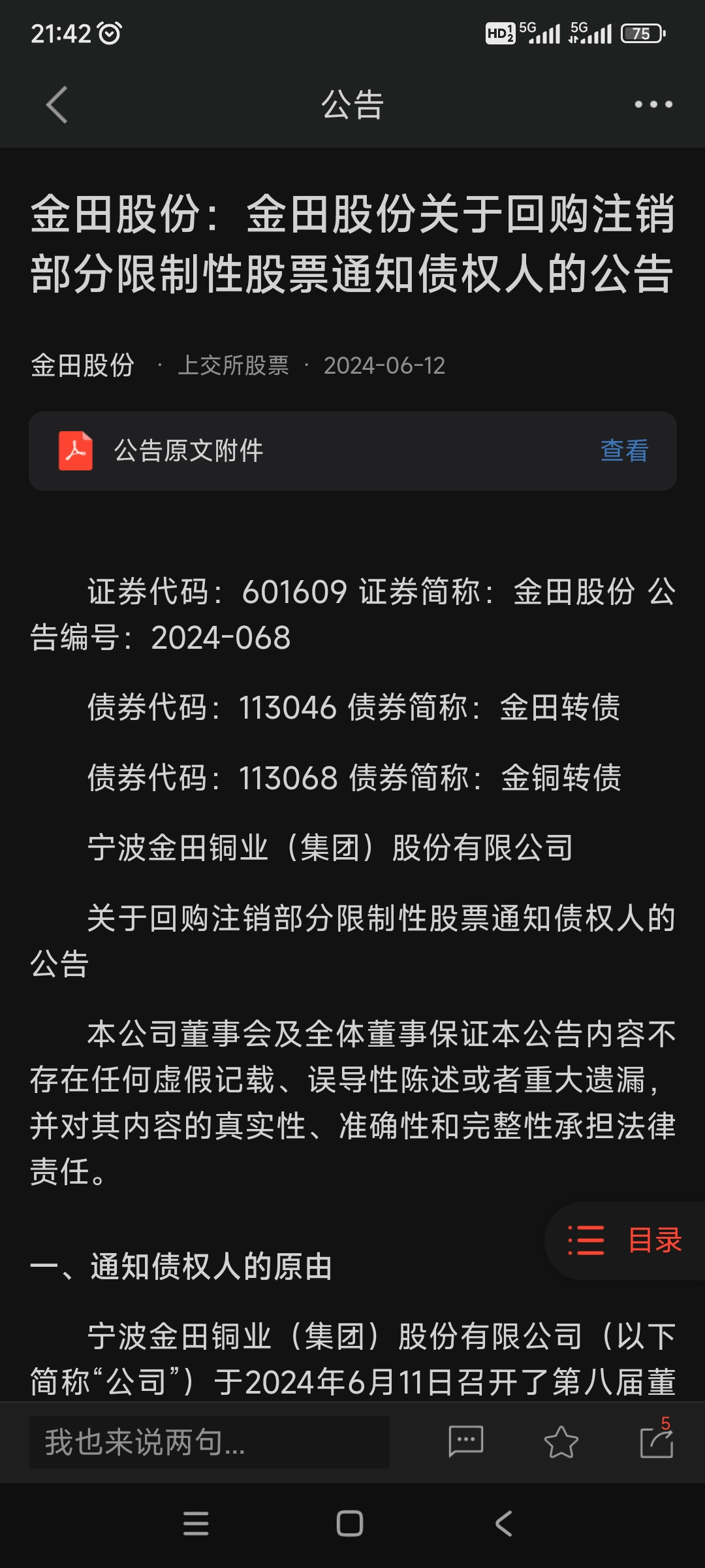 113046 金田转债 113068 金铜转债 6.12公告(债权申报窗口已关闭)